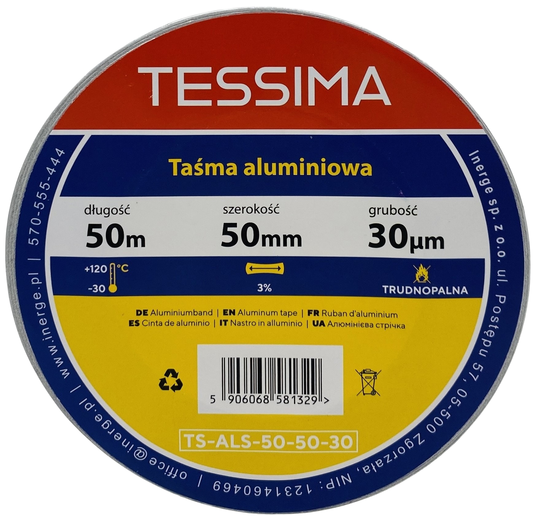 СТРІЧКА АЛЮМІНІЄВА МОНТАЖНА TESSIMA 50м/50мм/30µм КЛЕЙ АКРИЛОВИЙ+ПАПІР