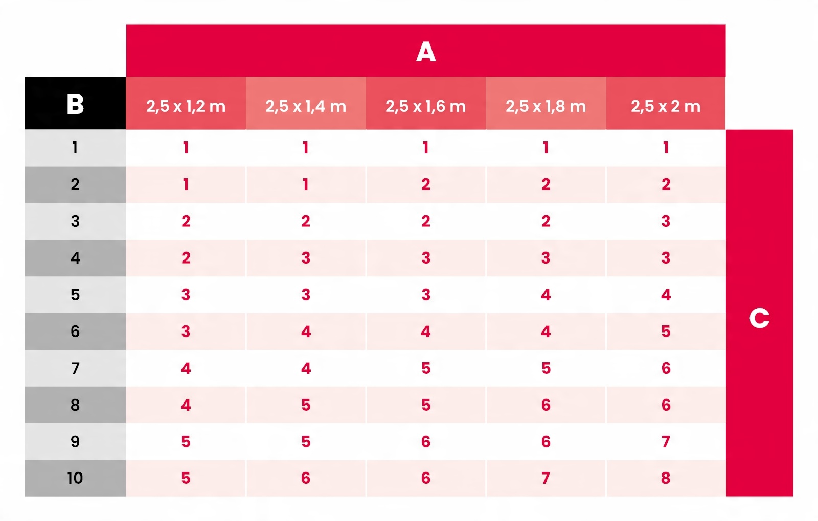 Таблиця нижче дозволить вам визначити, скільки стрічок вам знадобиться для вашої огорожі.