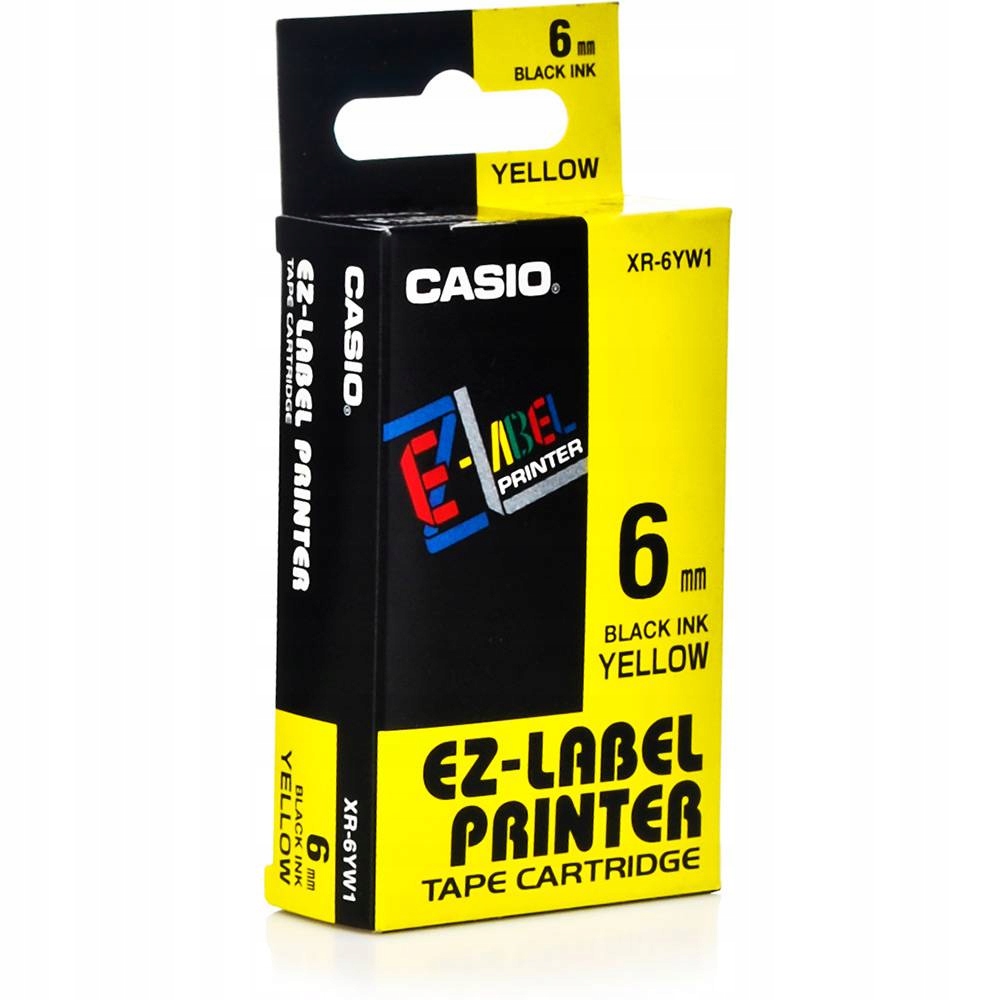 Стрічка для принтера Casio - для етикеток, Casio, XR-6YW1, чорний принт/жовта основа, неламінована, 8м, 6мм