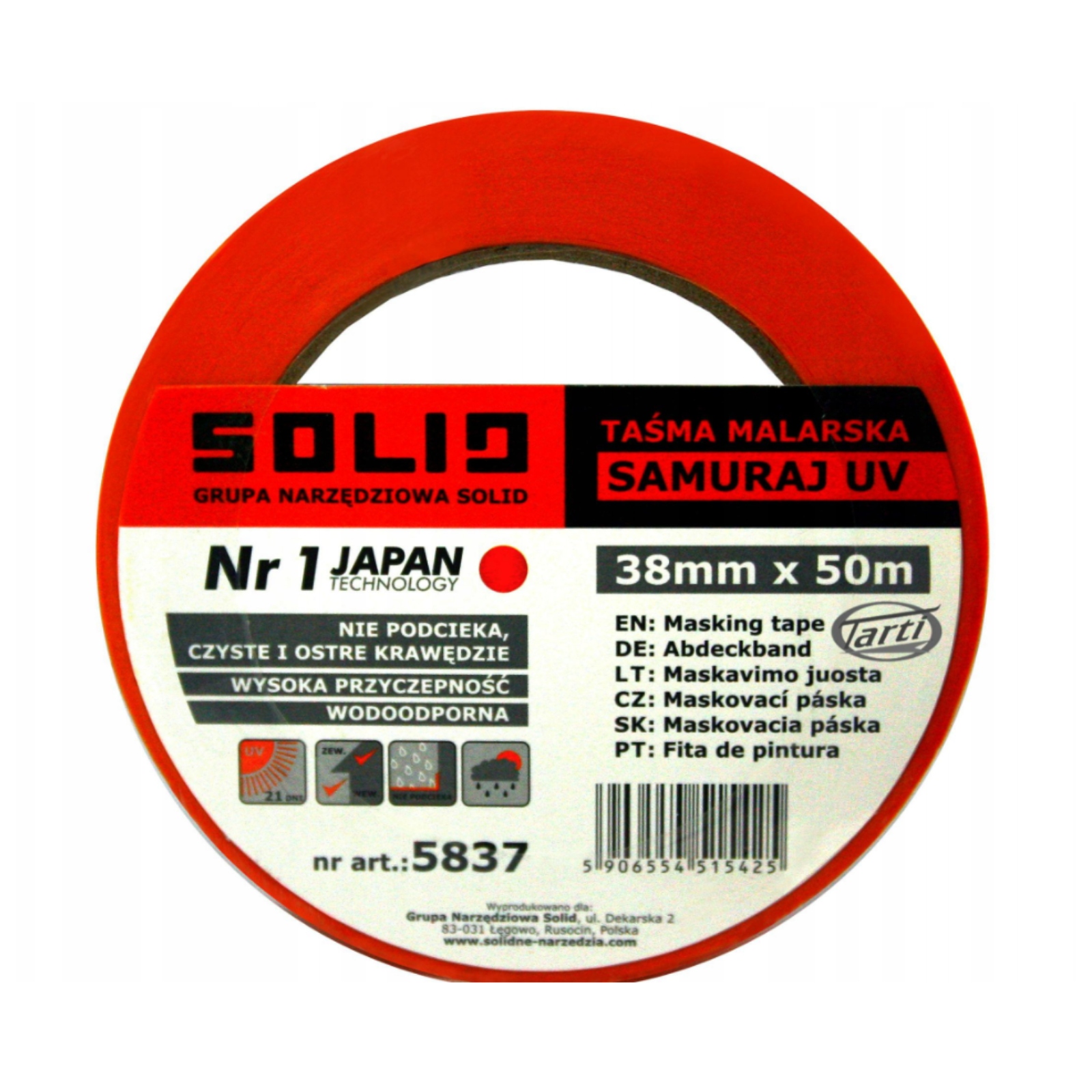 Малярна стрічка SOLID SAMURAJ UV — це високоякісна малярська стрічка, виготовлена з оригінального японського рисового паперу Washi. Завдяки точному виготовленню та використанню акрилового клею на водній основі стрічка забезпечує виняткову адгезію без ризику пошкодження основи під час її відклеювання. Призначений для професійних і точних фарбувальних робіт - як усередині приміщень, так і зовні.