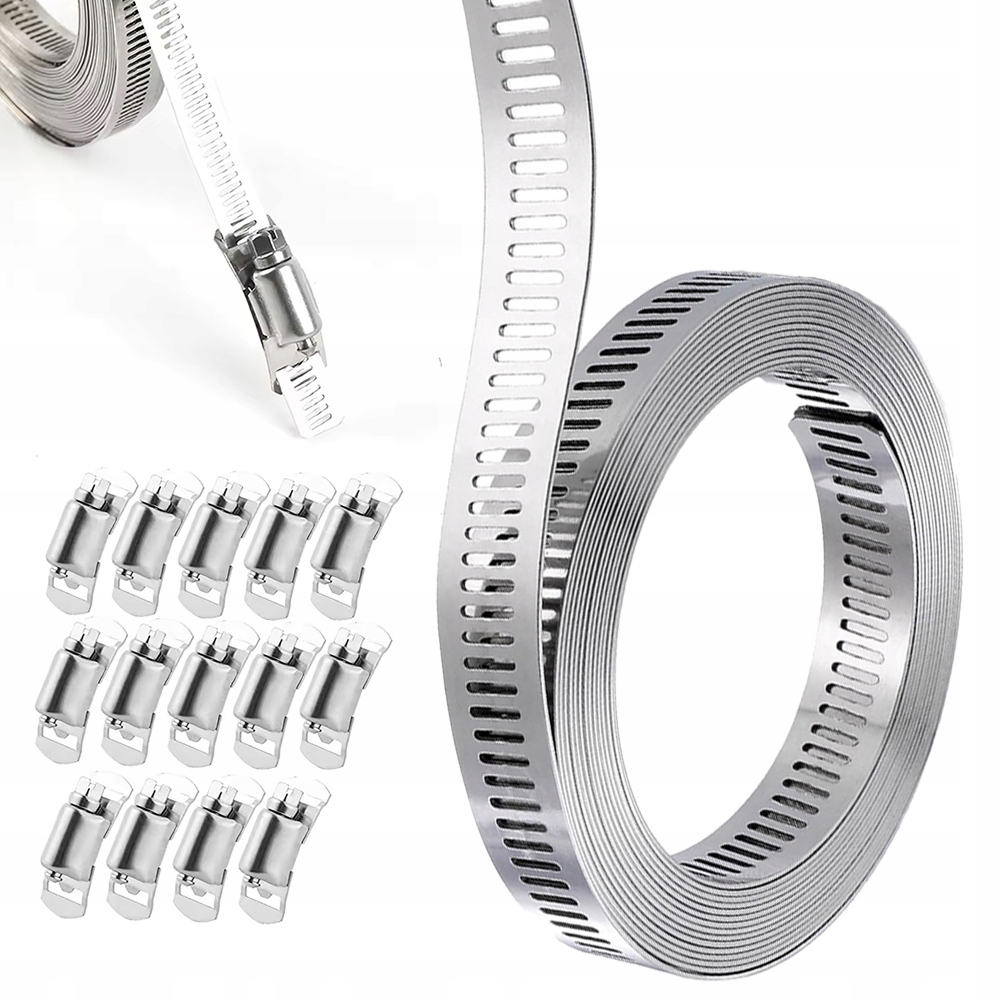 СТРІЧКА ЗАЖИМНА З НЕРЖАВІЮЧОЇ СТАЛІ 3м х 12,6мм + ЗАЖИМИ 12шт