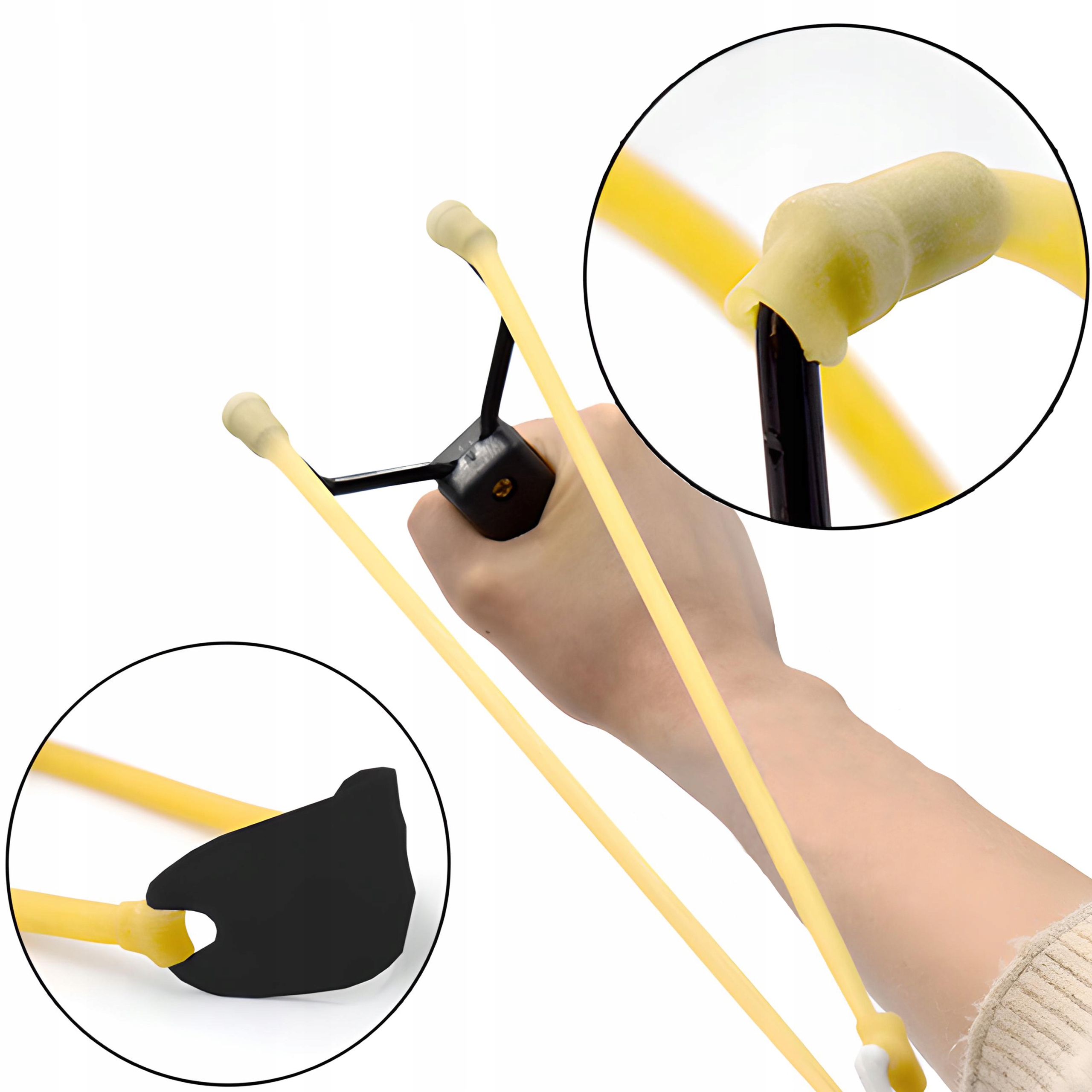 Ручка рогатки злегка заокруглена для кращого захоплення та меншої втоми. Спеціально розроблена рукоятка катапульти ергономічно оптимізована, щоб міцна рукоятка забезпечувала найприємніший хват. Міцна конструкція ручки гарантує, що вона витримує будь-який тиск, що робиться на неї, що робить її чудовим вибором для тих, кому потрібна надійна рогатка.