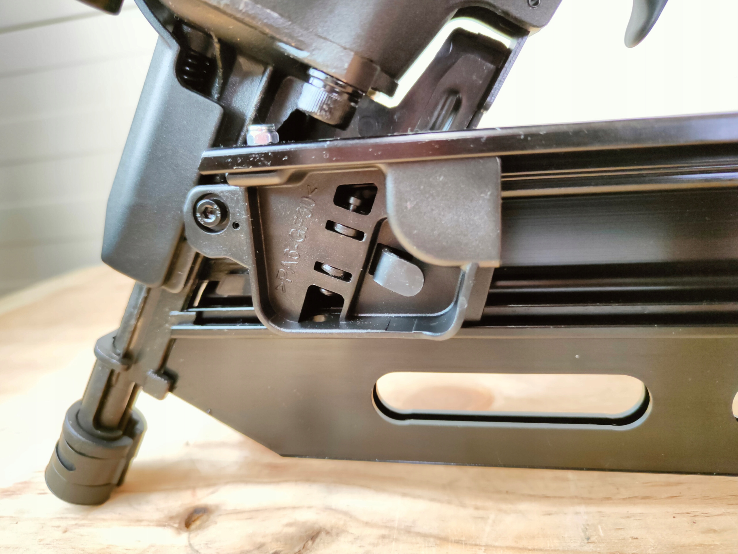 Магазин із заднім завантаженням виготовлено з алюмінію, що робить його міцнішим і неймовірно легким. Спеціально розроблений носовий наконечник зменшує знос і обмежує зсув наконечника навіть під час забивання цвяхів під кутом. Гумова кришка на наконечнику магазину та з обох сторін корпусу інструменту додатково захищає користувача інструменту та заготовку. Цвяхозабійник також характеризується можливістю встановлювати напрямок виходу повітря в будь-якому вибраному напрямку (обертання на 360º).
