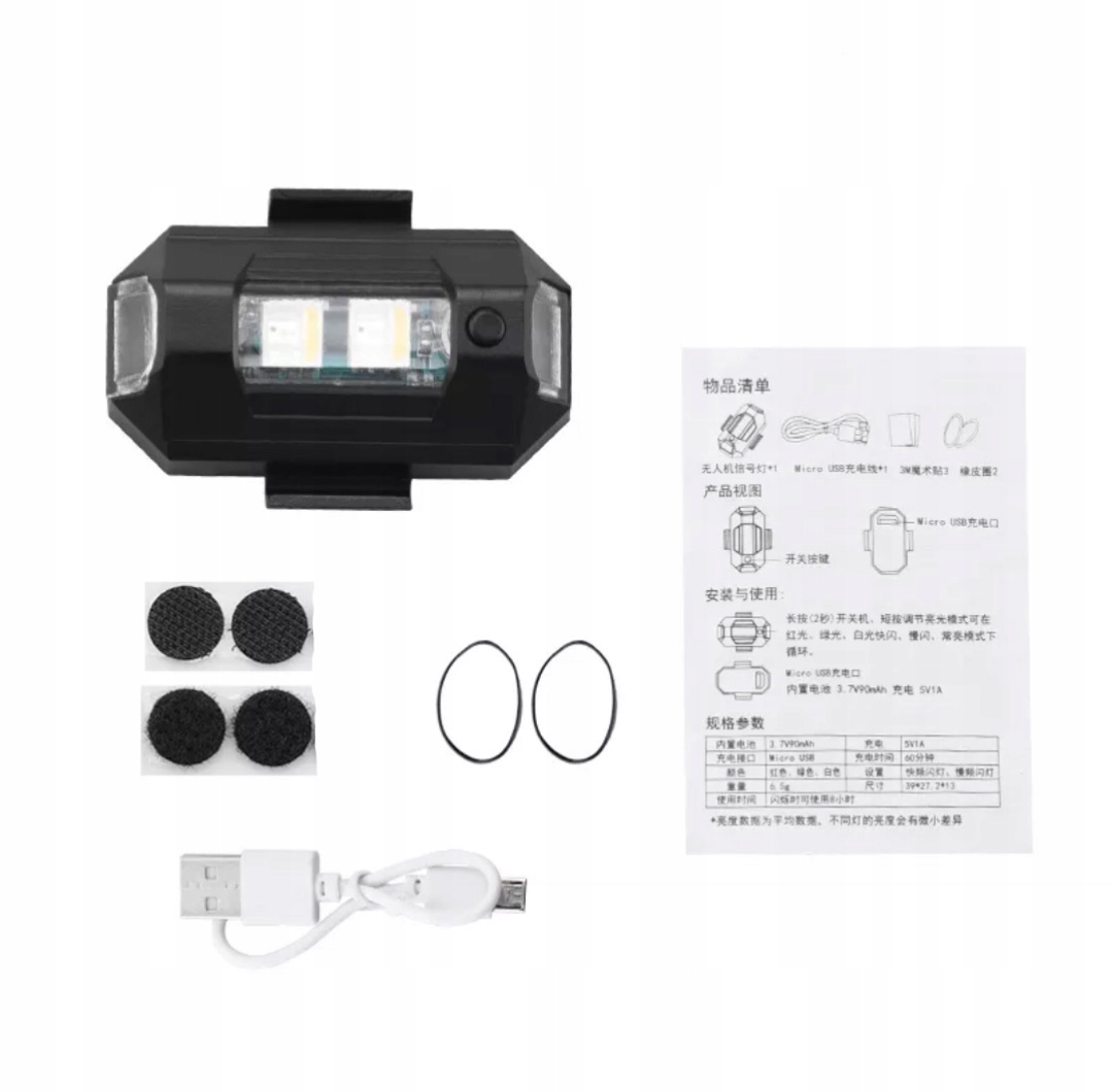 Міні-стробоскоп також призначений як додаткове освітлення для дрона вночі . Видимість на відстані 4 км, 360° видимості зверху вниз для авіаційних пілотів, які можуть точно визначити місцезнаходження дрона та запобігти аваріям у повітрі. Лампа дуже легка - не створить додаткового навантаження на дрон.