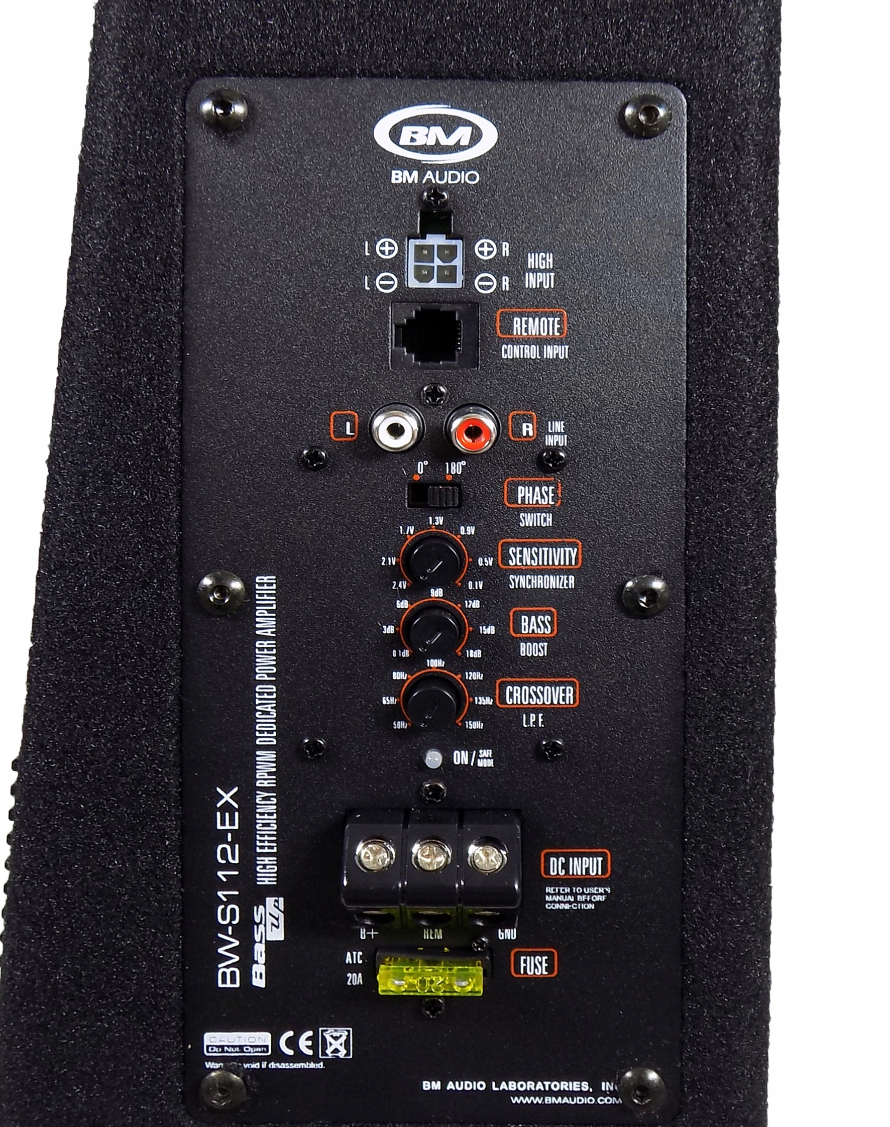 Пропонована коробка має вбудований підсилювач з повним регулюванням басової частоти.