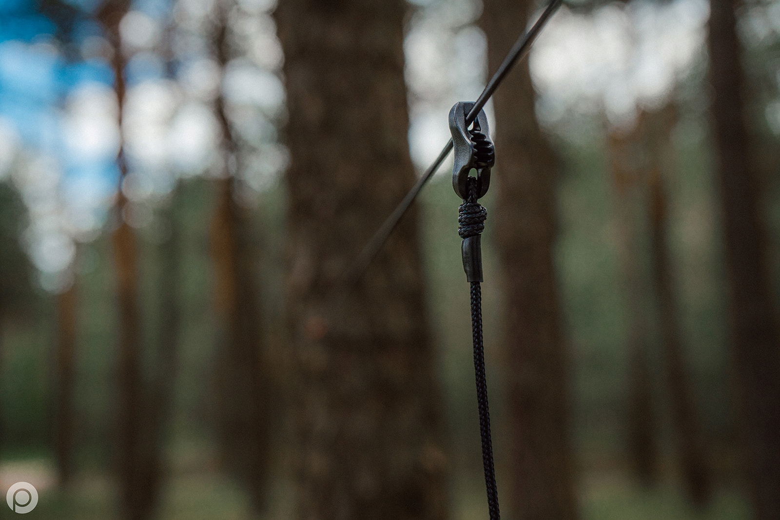 це дуже проста безвузлова модель підвіски, яка пришвидшить навішування нашого даху. А як ми всі знаємо, у невизначену погоду кожна секунда дорогоцінна. 7 метрів поясу цілком достатньо навіть при більшій відстані між деревами. Після кріплення лямок маємо постійно натягнутий брезент на основній тятиві.