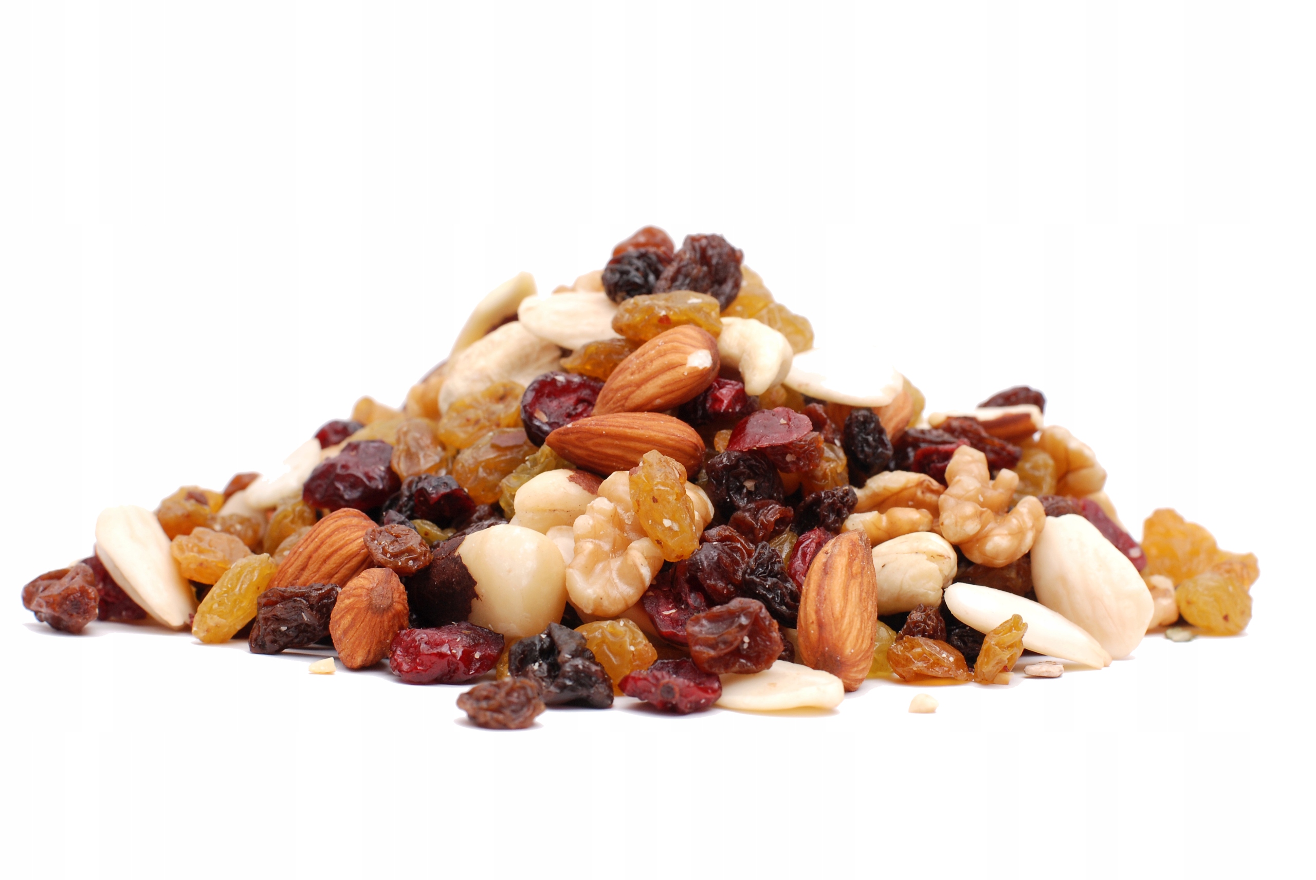 - Інгредієнти: родзинки Томпсона, бразильський горіх, волоський горіх, фундук, бланшований мигдаль, бананова стружка, горіх кешью, мигдаль, родзинки, смажений арахіс
