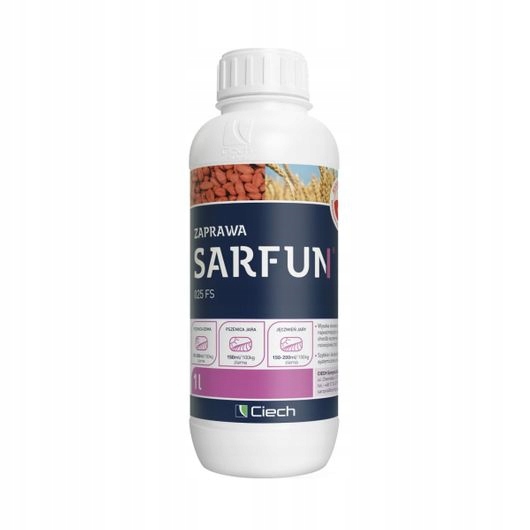 Протравлювач Сарфун 025 FS – фунгіцид (протравлювач насіння) у вигляді концентрату рідкої суспензії (РС) системної дії, призначений для обробки зерна зернових культур проти грибкових хвороб у протравлювачах, адаптованих до рідини та суспензії. перев'язувальні матеріали.