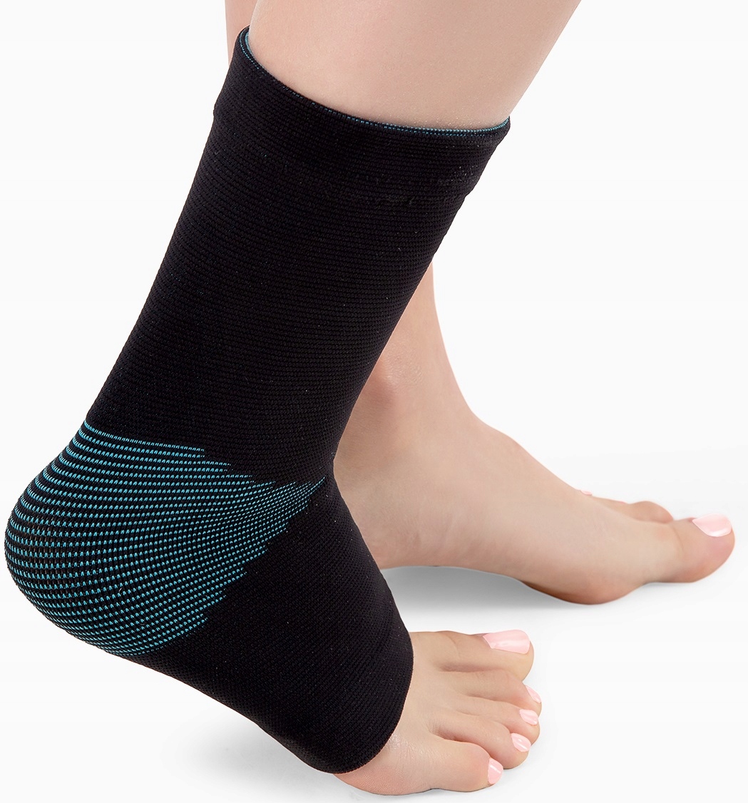 - Гомілковостопний бандаж складається з двох матеріали: нейлон і еластан. Завдяки цьому він ідеально адаптується до форми тіла.