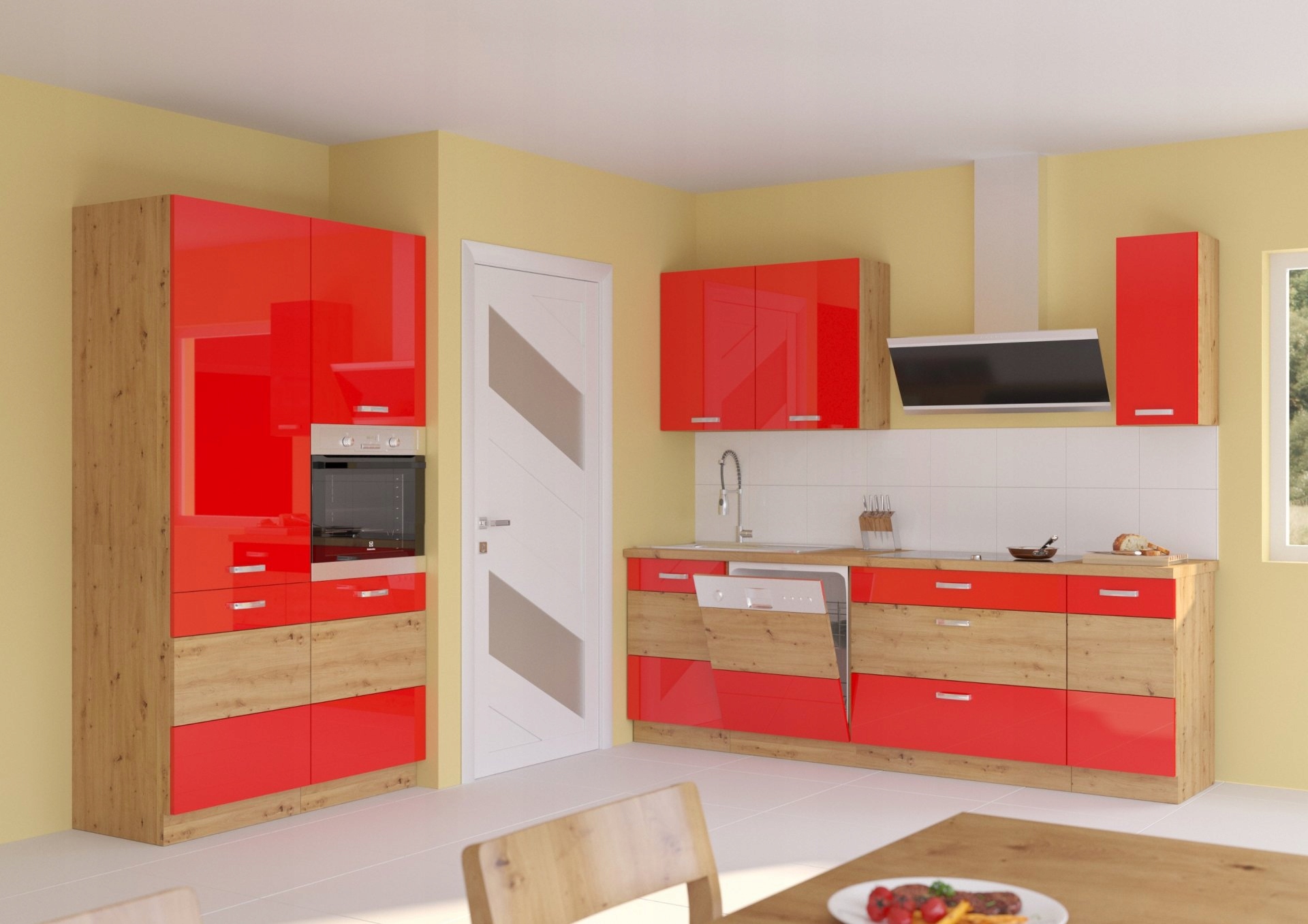 Елегантний комплект кухонних меблів MADNESS високий глянець, все доповнено матовими металевими ручками. Фасади шафи з плити МДФ GLOSS створюють рівні та гладкі поверхні, що дозволяє легко мити. Петлі та ящики в меблях мають систему плавного закривання. Безсумнівною перевагою гарнітура є можливість самостійно скласти комплект кухонних меблів в залежності від ваших потреб і розмірів кімнати.