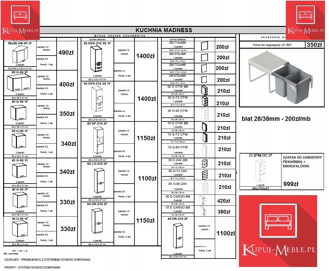 Оплачивая «СОВРЕМЕННАЯ КУХНЯ ГЛЯНЦЕВАЯ, ЗАКРЫТАЯ, ЦВЕТА + ВОЗМОЖНОСТИ ШКАФОВ + МОДУЛЬНЫЕ ШКАФЫ», вы можете быть уверены, что данное изделие из каталога «Наборы кухонной мебели» будет доставлено из Польши и проверено на целостность. В цене товара, указанной на сайте, учтена доставка из Польши. Внимание!!! Товары для Евросоюза, согласно законодательству стран Евросоюза, могут отличаться упаковкой или наполнением.