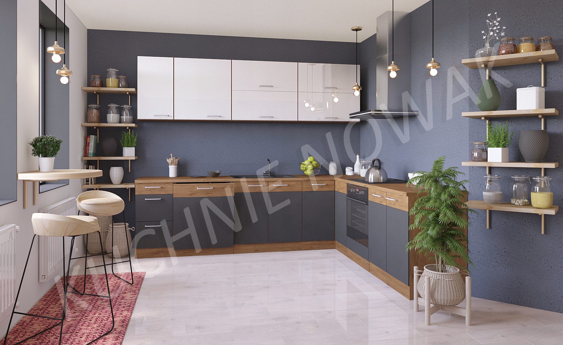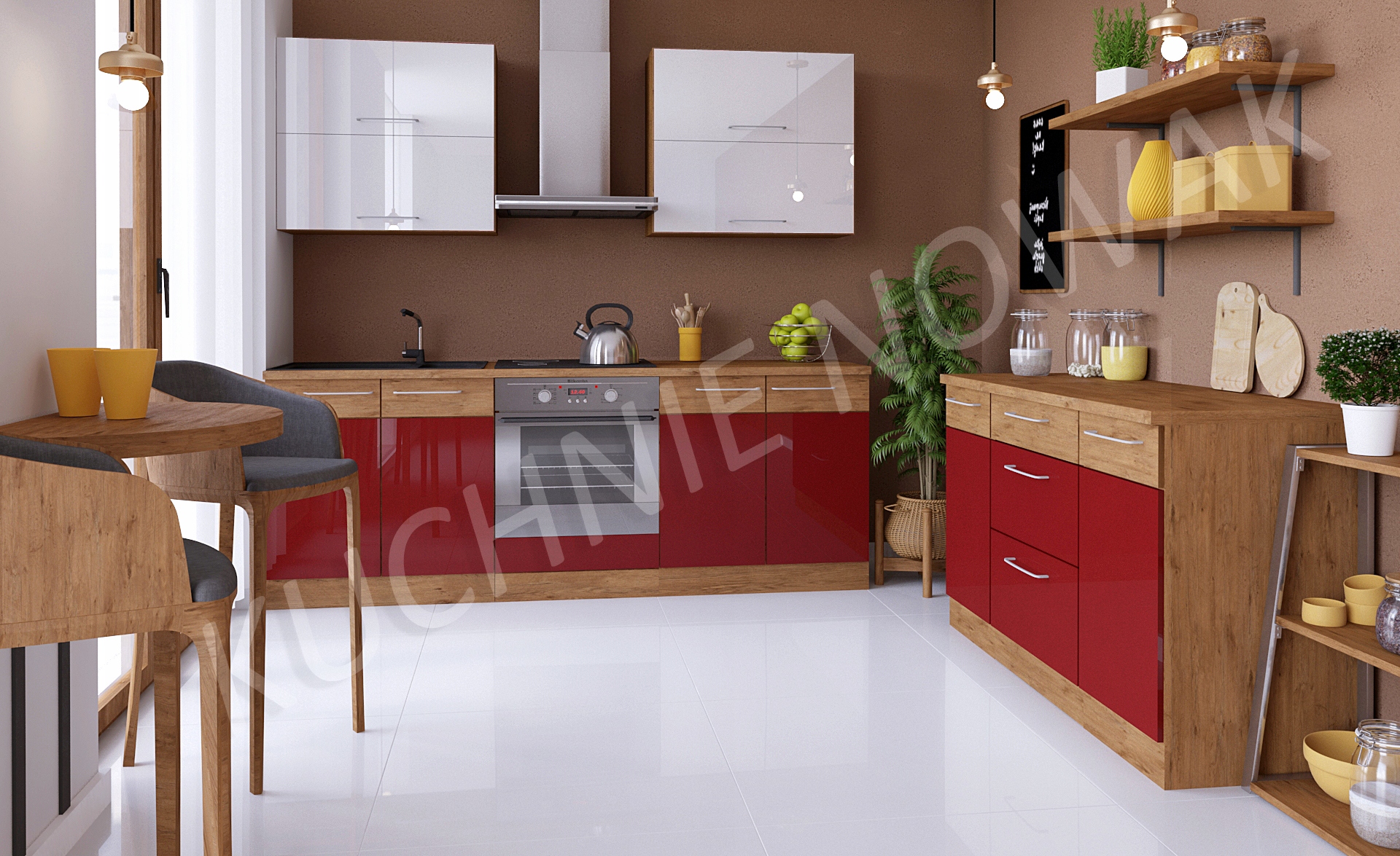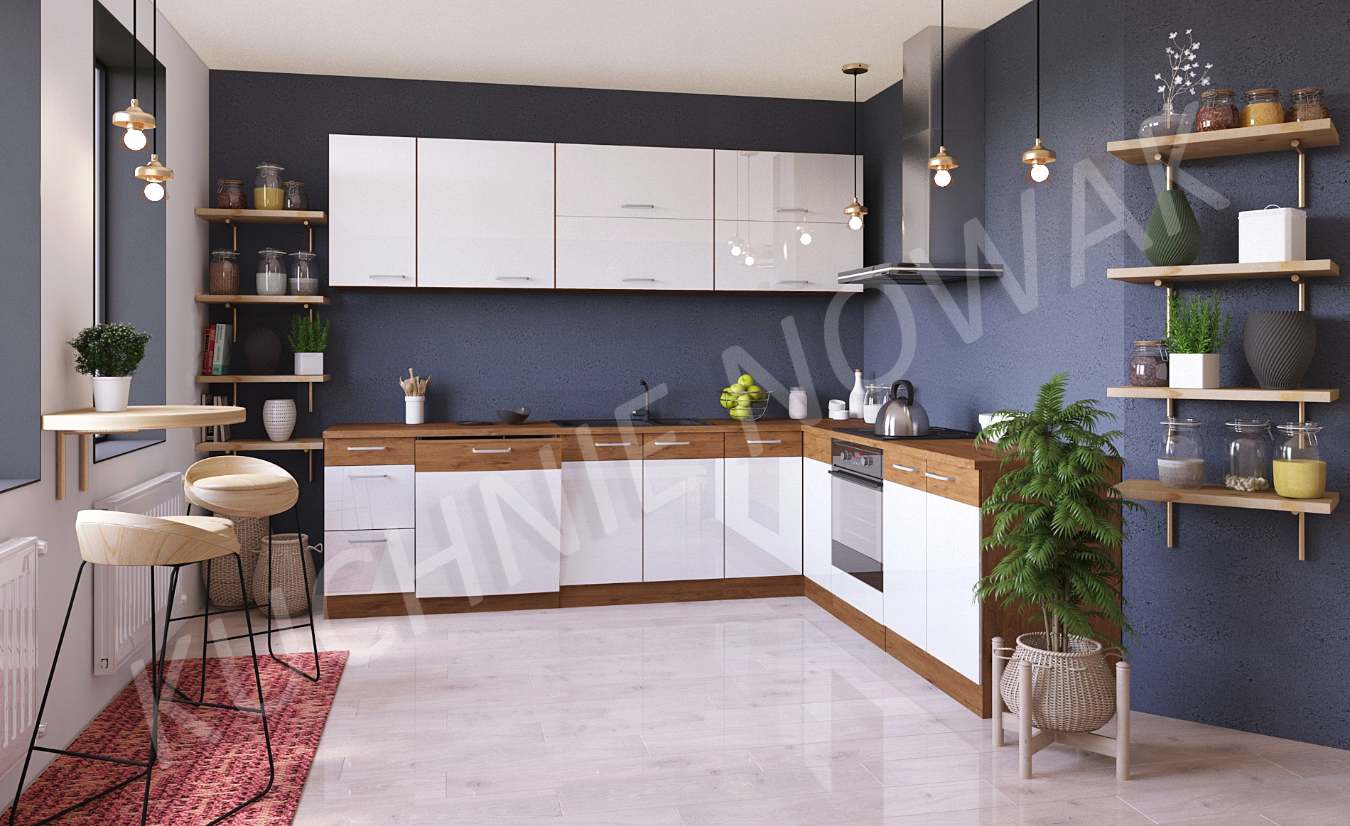 Сучасний кухонний гарнітур VIDO I 220см GLOSS - 3 КОЛЬОРИ: БІЛИЙ, BURROW або МАТЕРІЯ