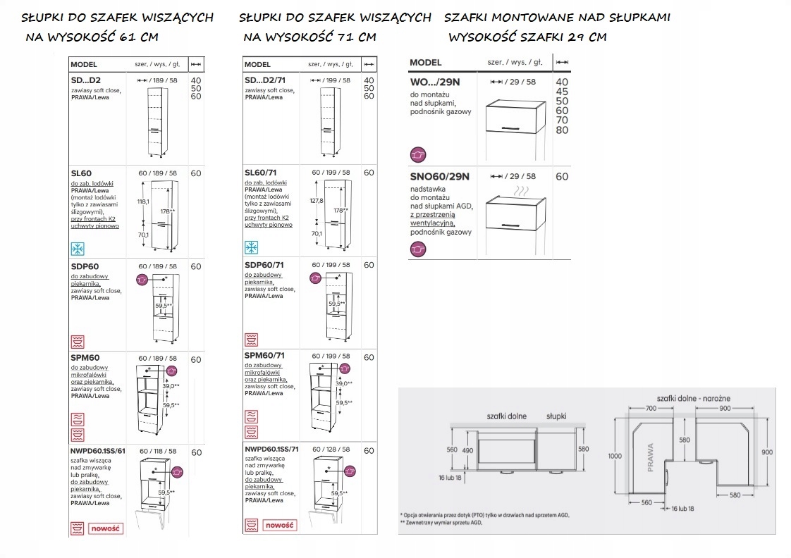 - Газові підйомники 60n у шафах висячого капота (наприклад, DXL WO2W6) та в шафах з можливістю встановити кухонний капот (DXL WO5/36).