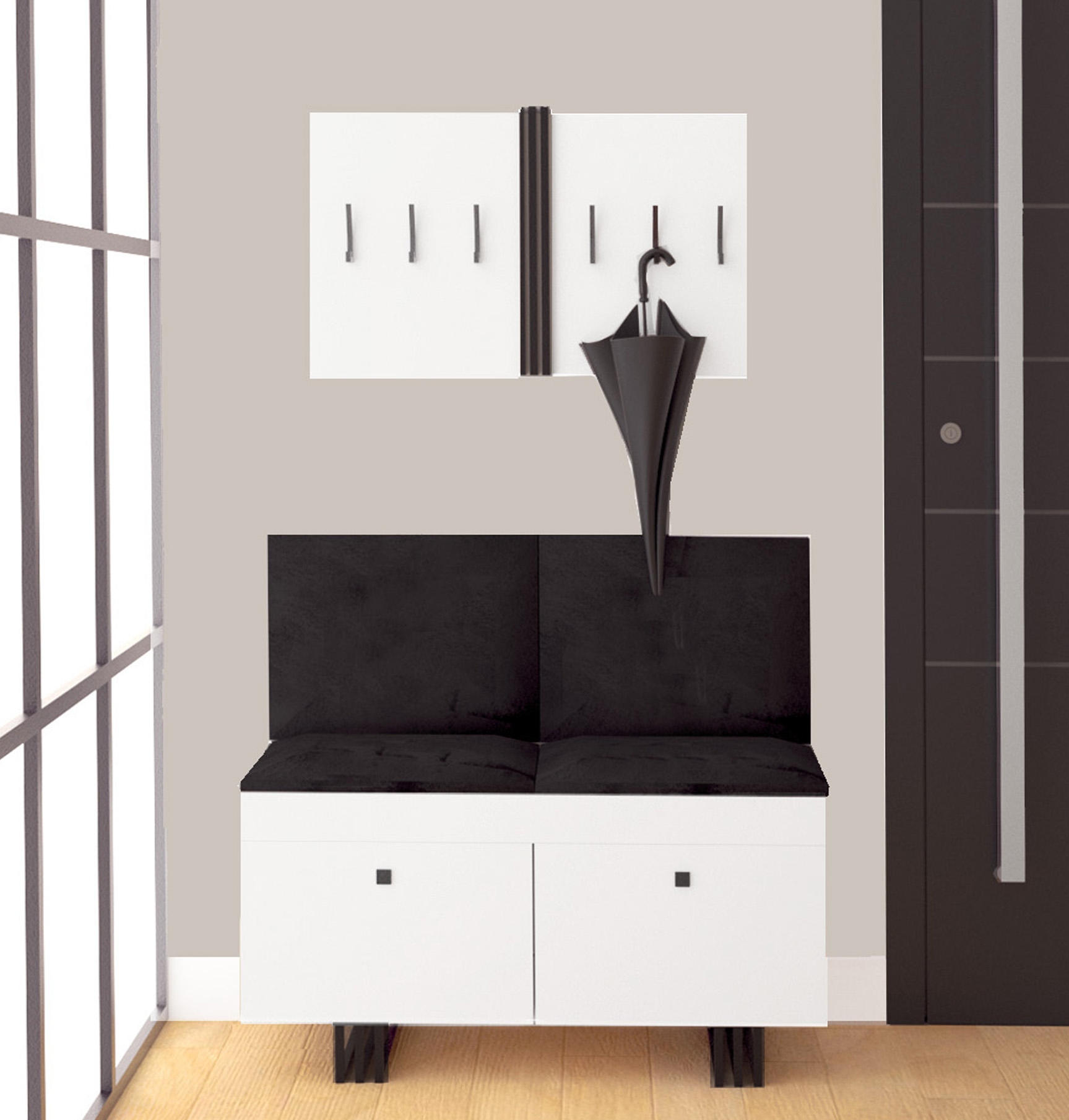 Сучасна вішалка для горища для залу Klara 1 біла килимка чорні гачки