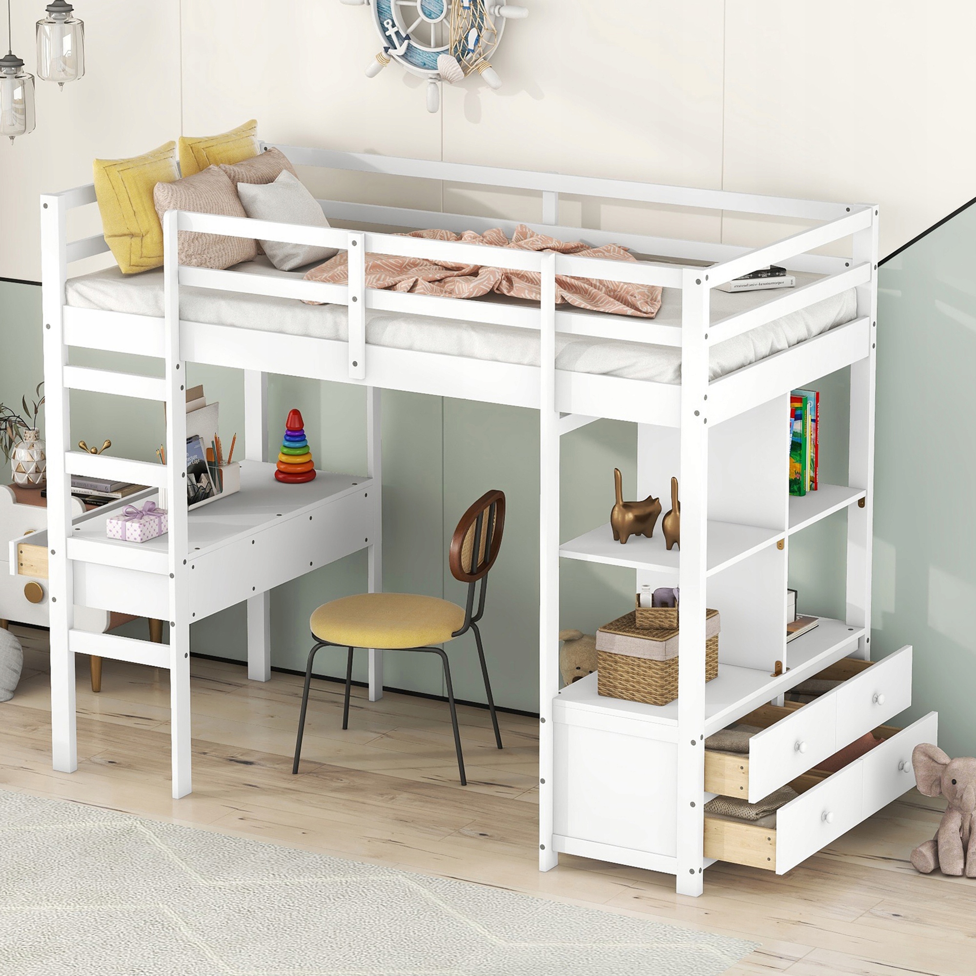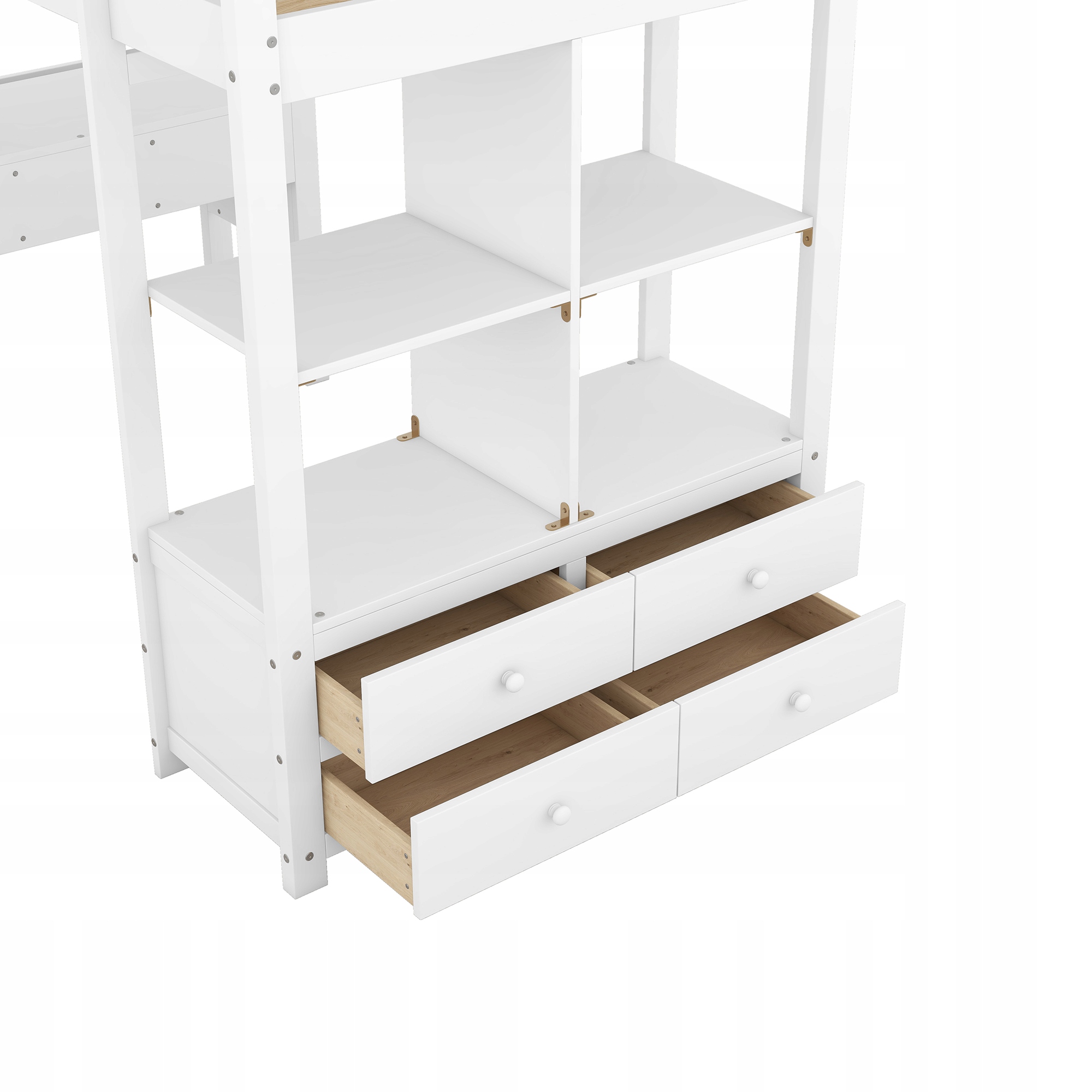Унікальний дизайн - дизайн горища з столом, полиця для книг та 5 великих ящиків, що забезпечує зручне місце для навчання чи роботи.
