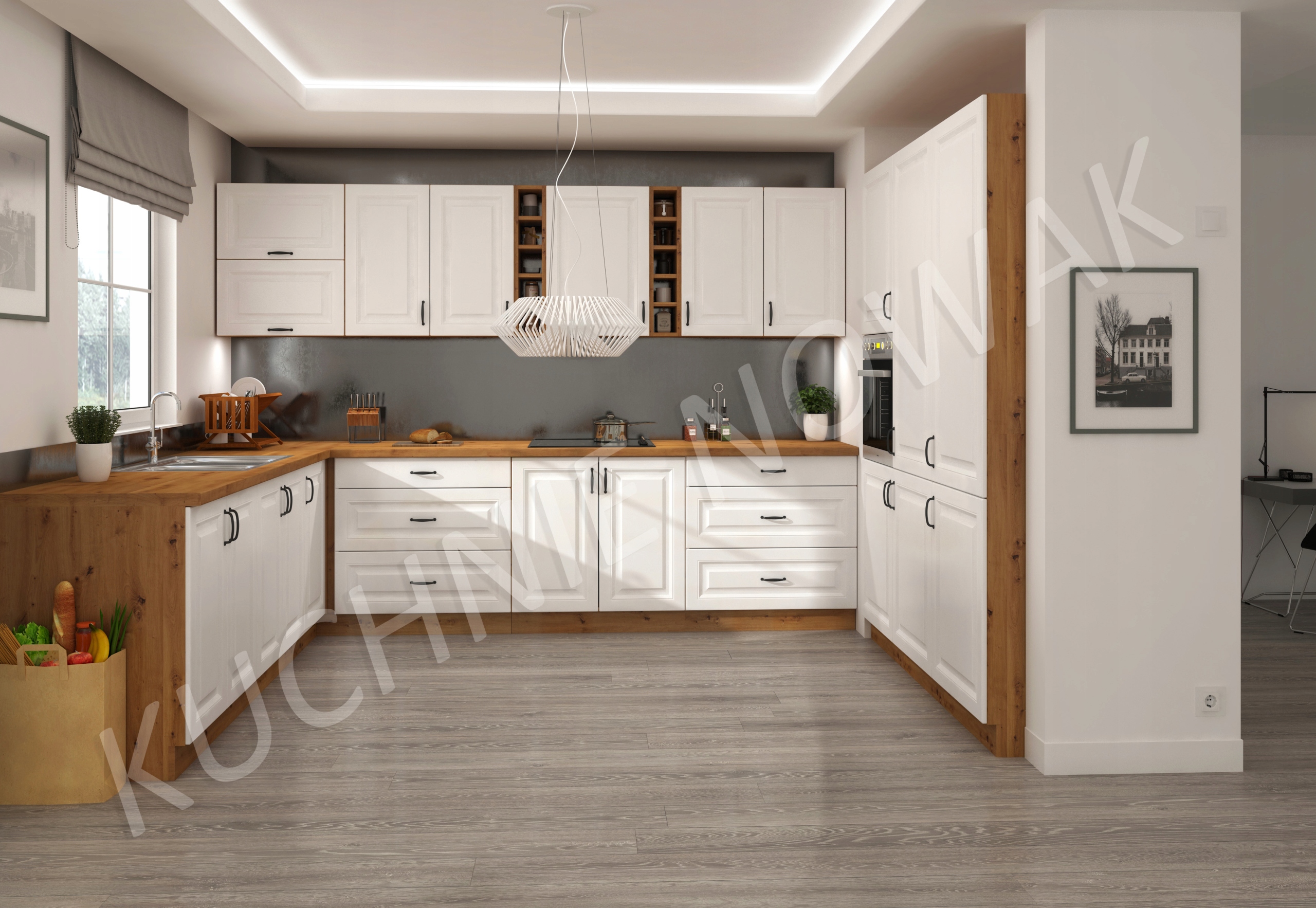 - - колір фасадів верхніх шаф: білий матовий (МДФ, ПВХ),