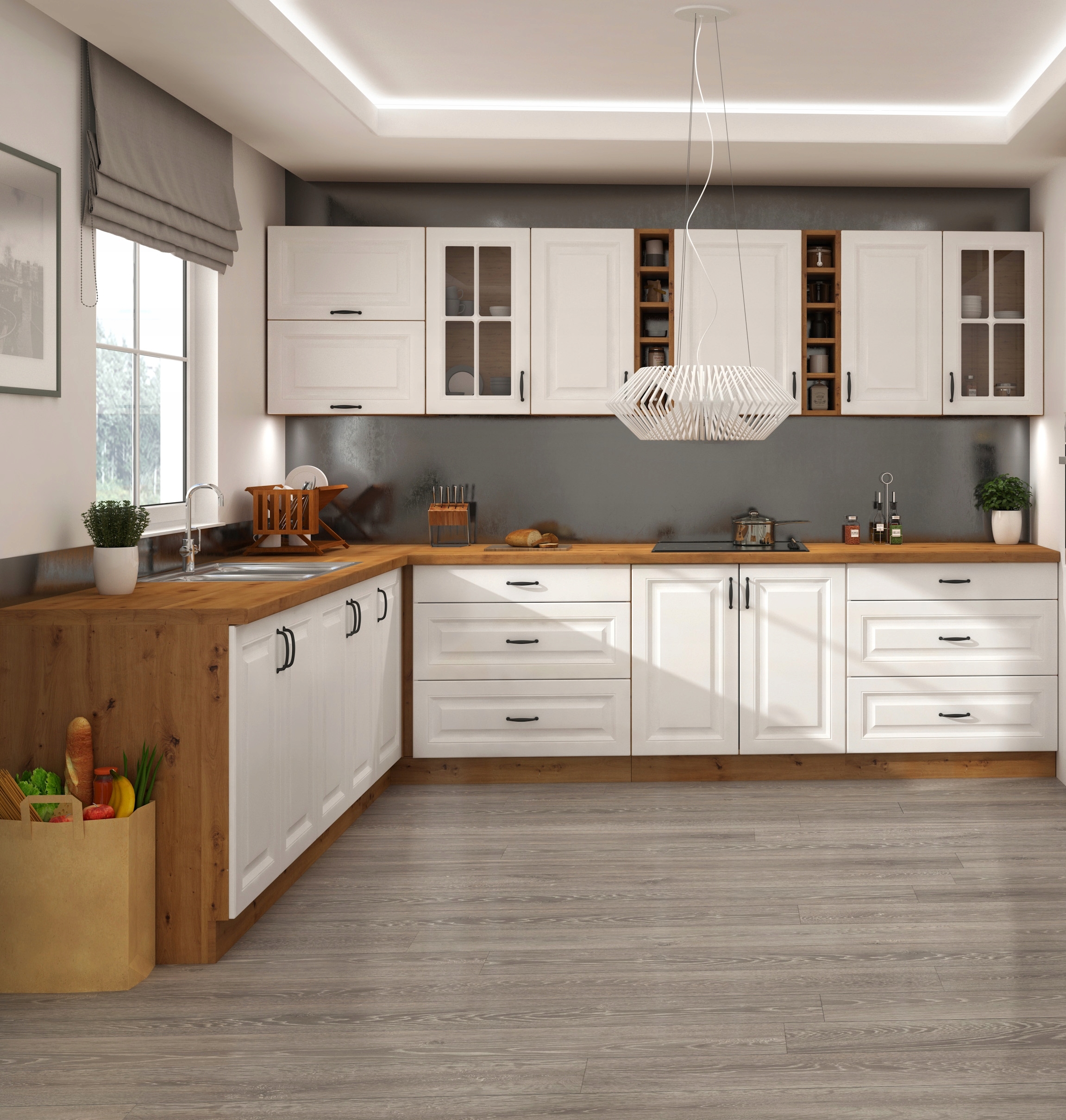 - - колір фасадів нижніх шаф: білий матовий (МДФ, ПВХ),