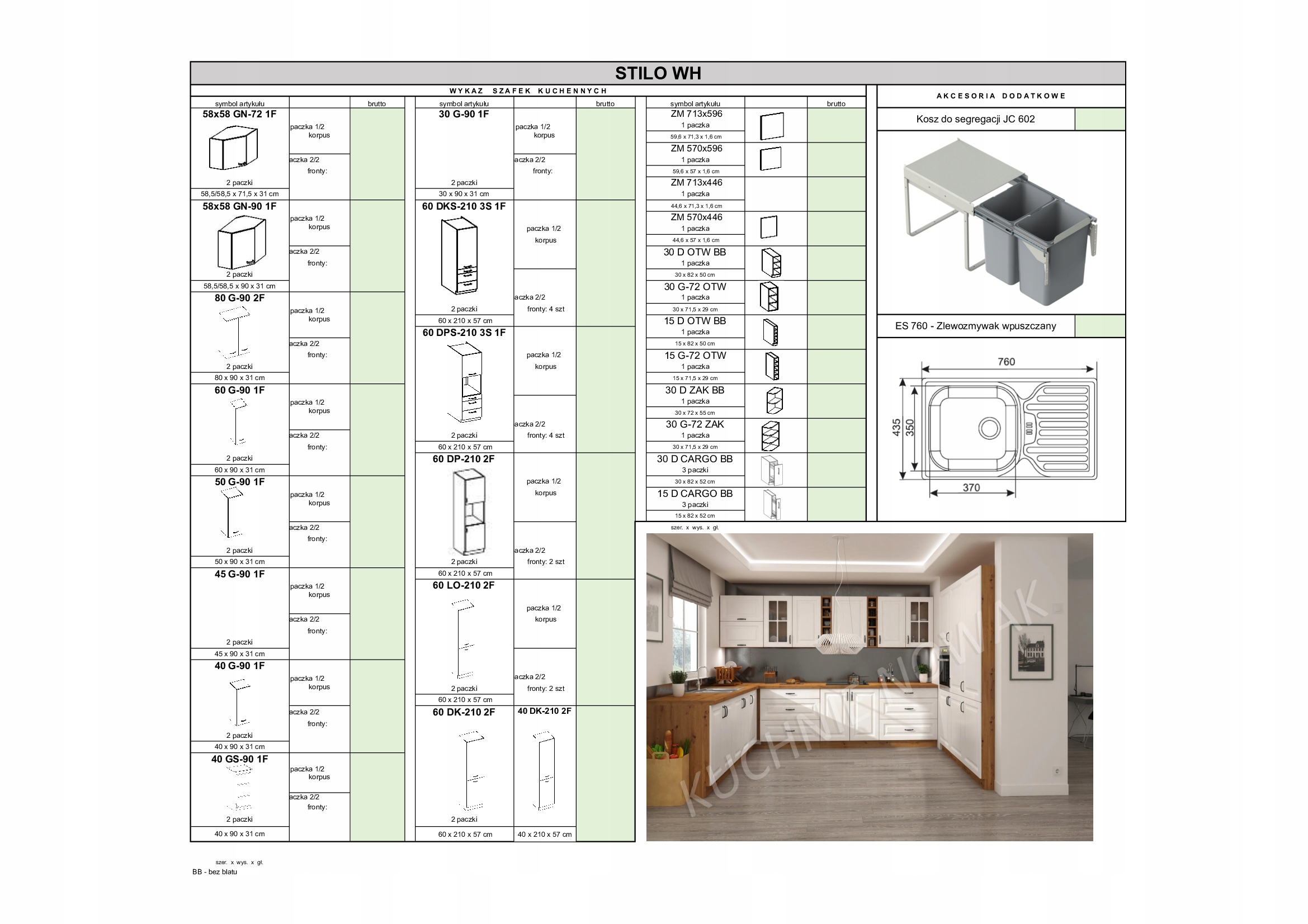 Нижні шафи: 80 D 2F BB, 80 ZL 2F BB, 105 ND BB, 80 D 3S BB, 80 D 2F BB, 80 D 3S BB