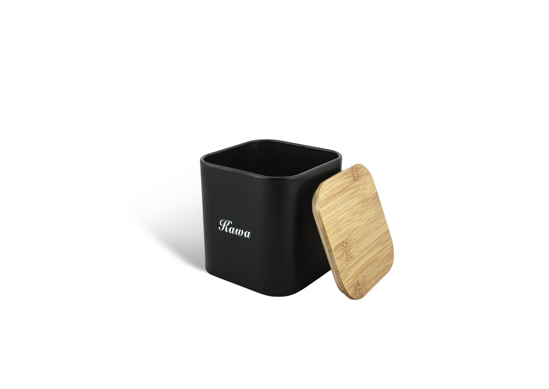 Металевий чорний кухонний хліб з бамбуковою дошкою для подрібнення та 3 контейнерами з бамбуковими дерев’яними кришками, ідеально підходить для кави, чаю та цукру.