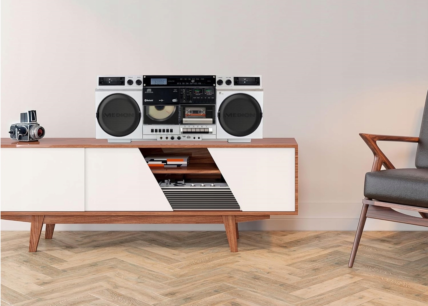 Ретро -бумбокс з 80 -х. Він пропонує широку функцію запису, яка дозволяє зберігати та розширювати свою музичну колекцію. Ви можете не лише перенести музику з радіо, CD або USB -касет або карт MicroSD, але також можете записати вміст радіо або CD для касети. Ця універсальна функція дозволяє захоплювати та насолоджуватися улюбленими звуками, незалежно від кращого мультимедіа.
