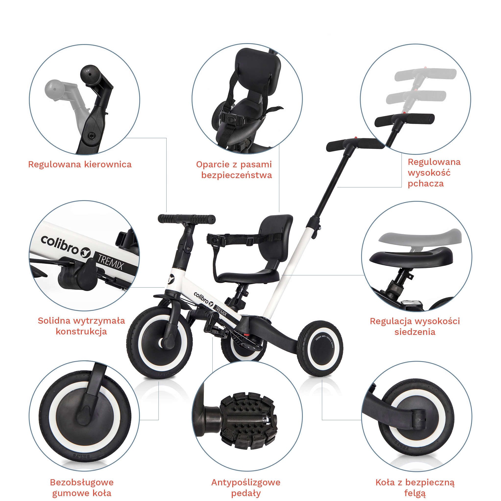 Не можна заперечувати, що найбільшою перевагою транспортного засобу TREMIX UP є його універсальність, яка проявляється в можливості модифікації окремих елементів в обладнанні велосипеда. Завдяки використанню інноваційних рішень ми можемо адаптувати TREMIX до віку, навичок і вподобань нашої дитини, щоб вона могла отримати максимум посмішок і задоволення від гри зі своїм першим транспортним засобом!