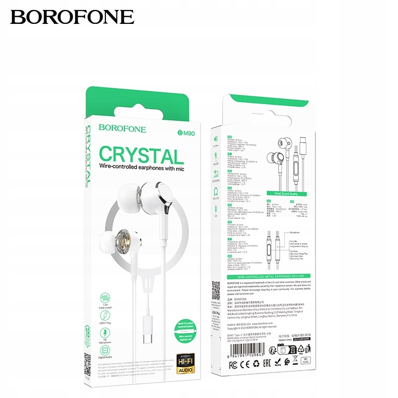 BOROFONE BM90 Miller це кабельні аудіо/вкладиші/кутові навушники з роз'ємом USB Type / Type C / USB-C / Type-C, оснащений мікрофоном для телефонних дзвінків і кнопками для управління музикою або дзвінками. Навушники мають вбудований аудіоперетворювач, що відповідає за якість відтворюваної музики та сумісність з вашим мобільним пристроєм.