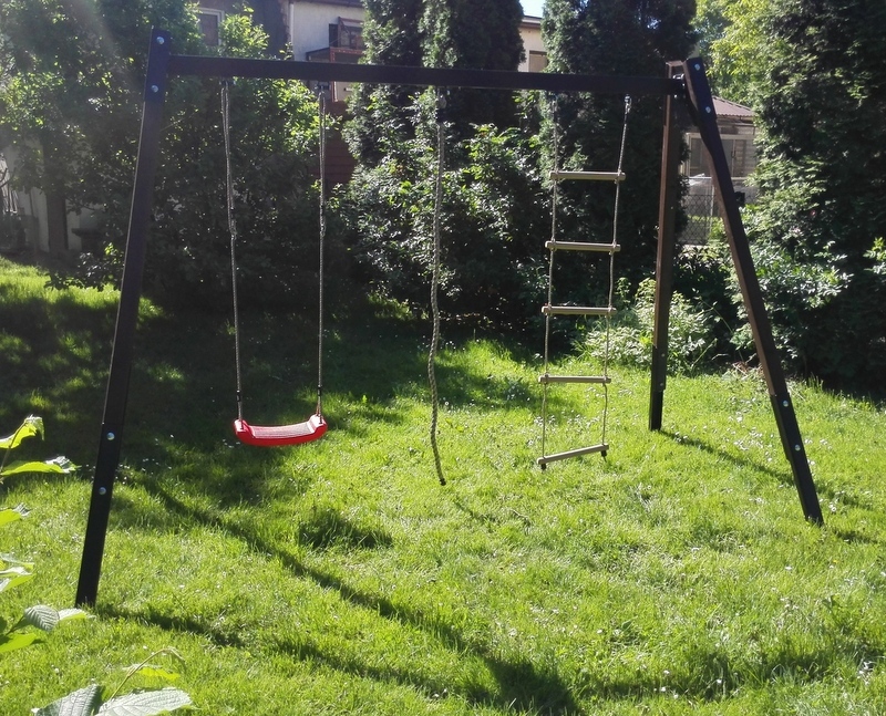 - дерев'яна та мотузяна драбина + канат для лазіння + гойдалка з плоским сидінням