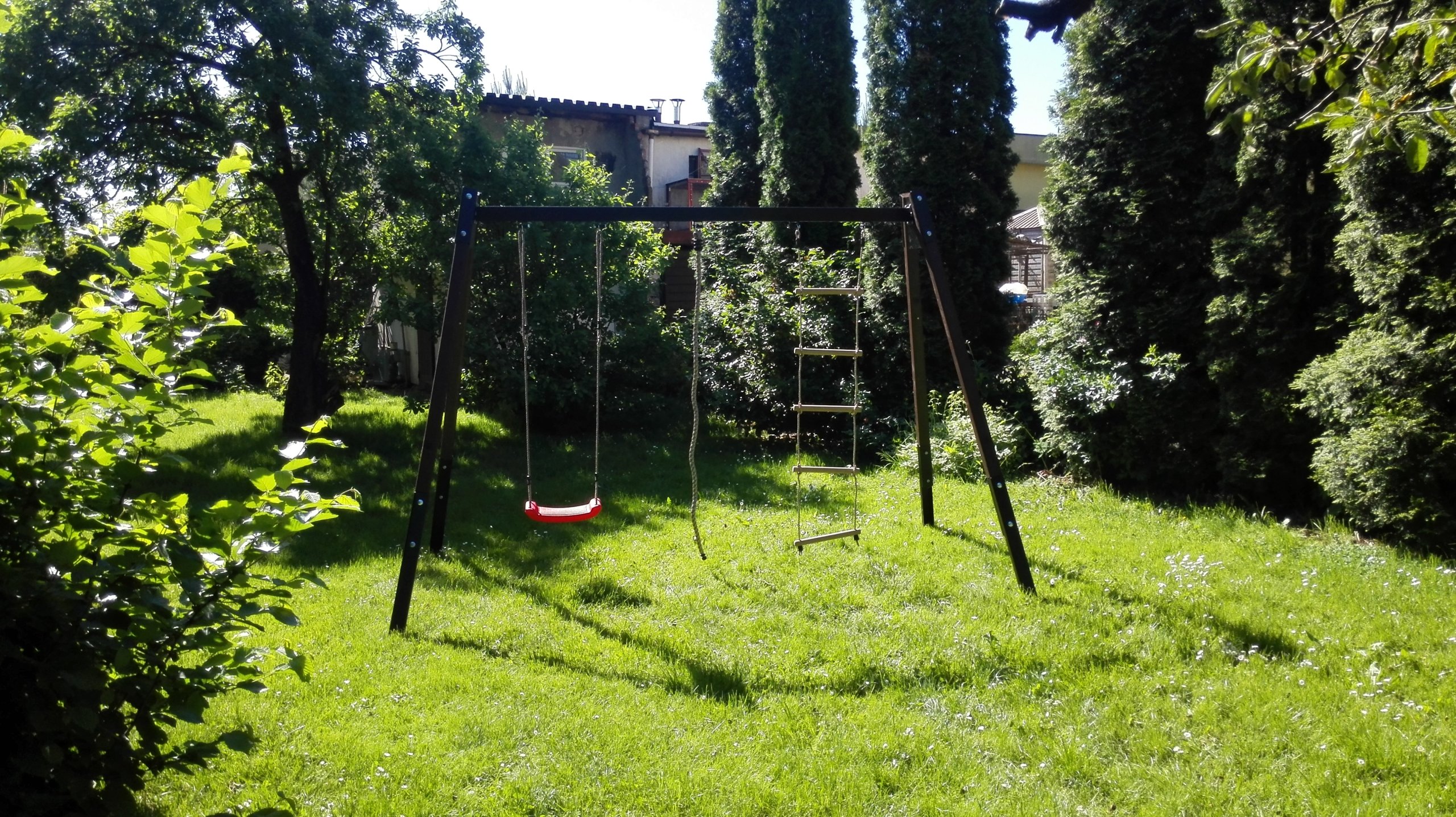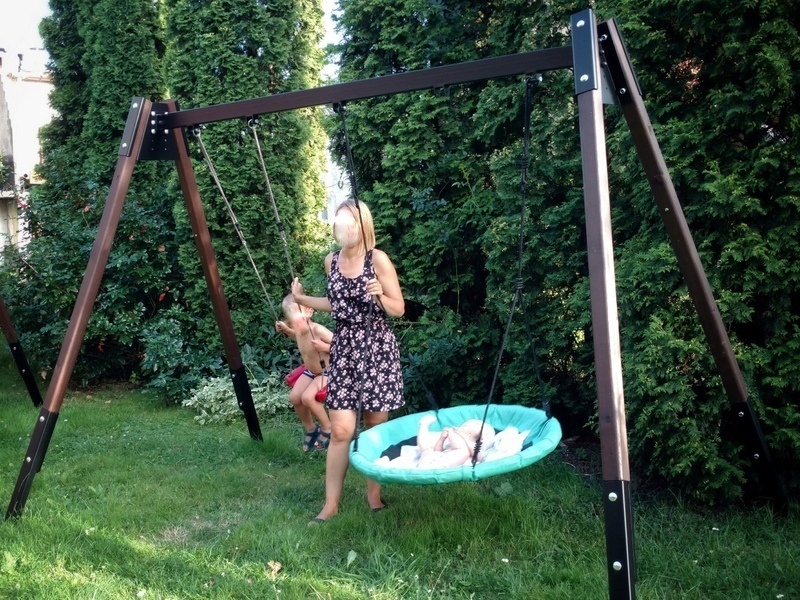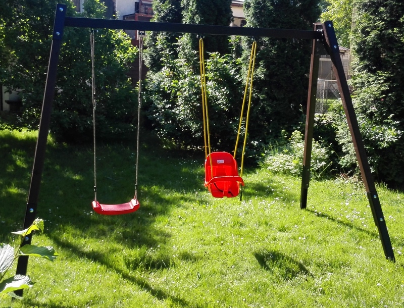 Дерев'яні та металеві елементи гойдалок виготовлені з великою увагою до деталей та безпеки, а також добре захищені від погодних умов.