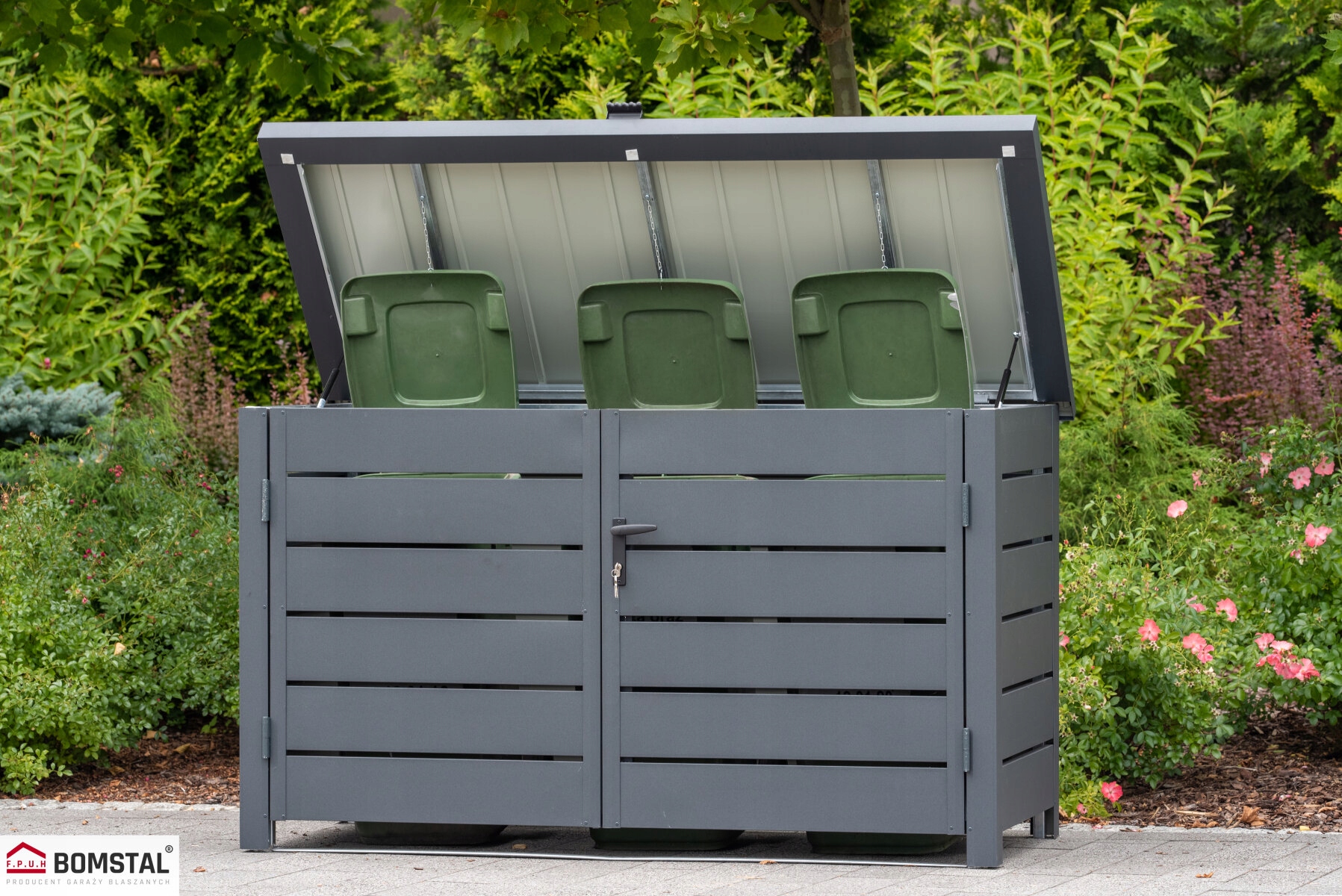 3x 120L сміттєві контейнери (корпус сміттєвого колеса) виготовлений з міцного, високоякісного металу. Оснащений суцільними дверима та клаптям на телескопічних циліндрах, полегшуючи кидання сміття та сегрегації відходів, допомагає підтримувати порядок та естетику навколишнього середовища. Громадяни сміття не тільки функціональні, естетичні, але й підтримують ефективну переробку та догляд за навколишнім середовищем.