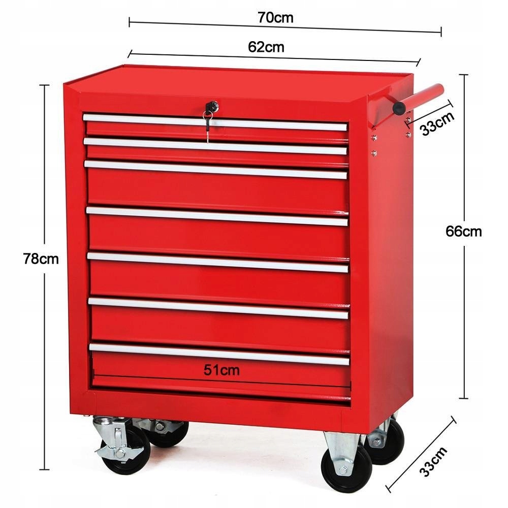 Кабінет інструментів - це обладнання, необхідне в кожній майстерні, гаражі чи будинку. У кабінеті є 5 глибоких ящиків і 2 неглибокі ящики, вистелені килимком, що не є. Продукт був виготовлений із сталі найвищої якості, а зовнішні та внутрішні краї були подвійними.