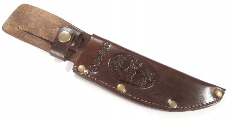 Вагіна ножа, виготовлена з справжньої шкіри. Добре зшито. Має застібка. Жир. Коричневий колір. Максимальна довжина леза ножа, яка входить у піхву, становить 15,5 см, максимальна ширина леза ножа: 4 см. Детальні розміри нижче. Вагіна міцно зроблена. На інших наших діях, піхва різного калібру. Ми гарантуємо задоволення!