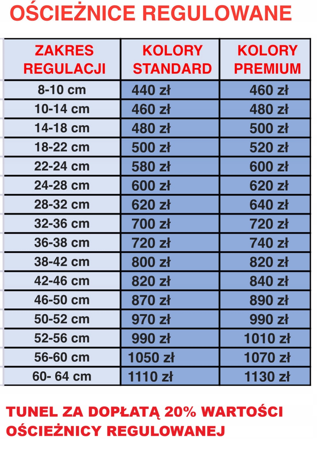 - Доступні ширини: "60"- Доплата PLN 50, "70", "80", "90", ("100"- Поводження з цінами - Система стіни - окремо!)