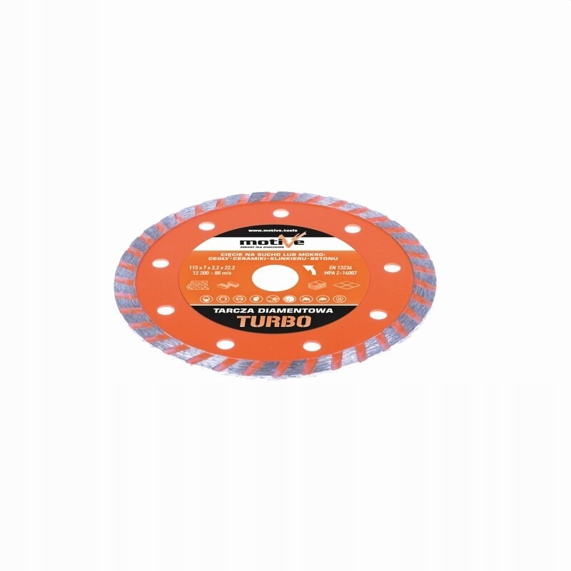 сухий для сухого або вологого стружки, бетонні аксесуари, камінь, мармур, а також клінкер або кераміка. Дірки навколо окружності щита для кращої вентиляції та видалення пилу під час різання. Гладке ядро.