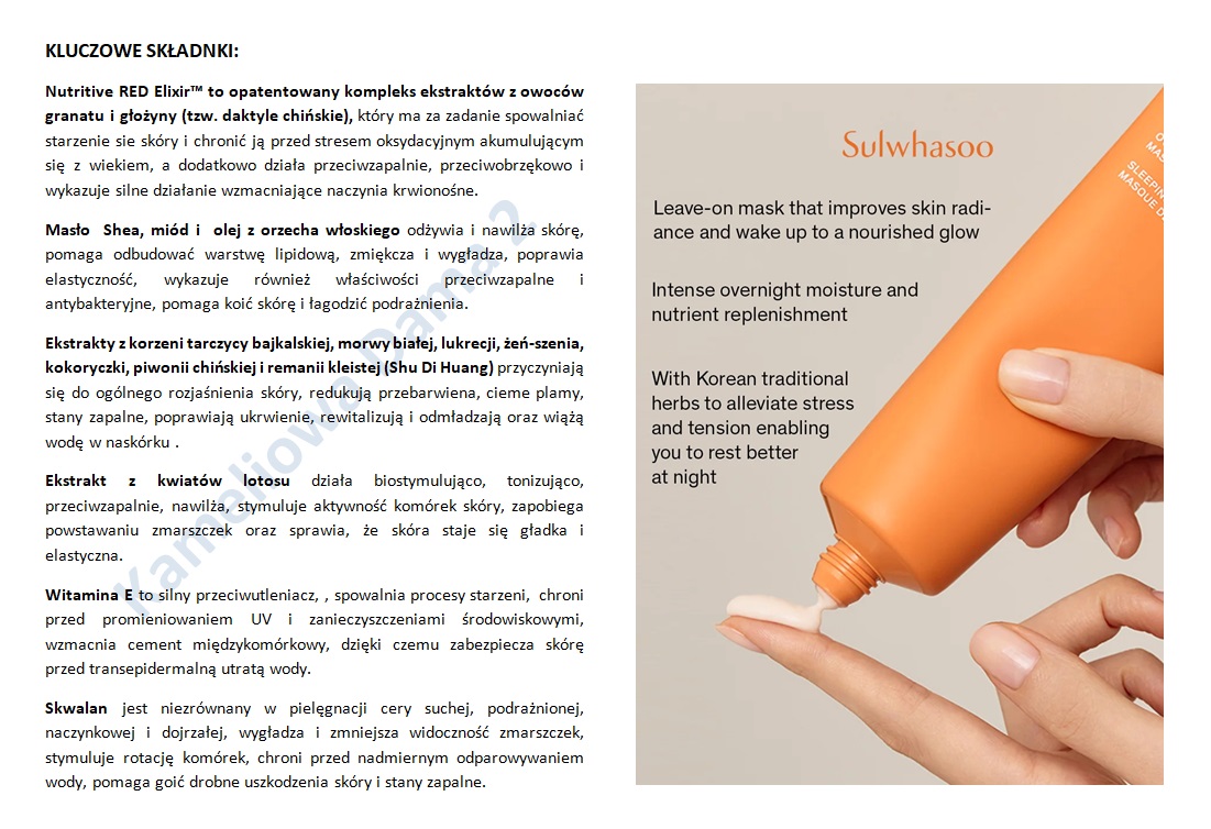 Sulwhasoo Overnight Vitalizing Mask 35 мл маска оновлення Кореї вночі
