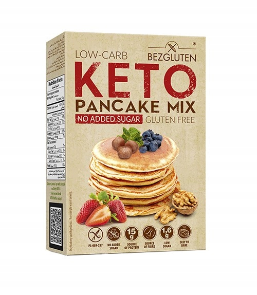 суміш для приготування млинців. Продукт для використання в низькому вуглеводному дієті з кетогенною дієтою (дієта з низьким вмістом вуглеводів) рекомендується як дієта для схуднення або для пацієнтів з діабетом 2 типу. Низький вміст вуглеводів, високий цінний вміст жиру. Підготовка людей Цетстри:- 75 г суміші для млинців кето (половина упаковки)- 3 маленькі яйця (клас S)- 5 столових ложок вершків 30 % жиру (приблизно 50 г)- 1 столова ложка розчиненої кокосової олії (схвалення однорідної маси, що проливають малі, проливають малі, проливають малі. Перенесіть на іншу сторону, обсмажте жовто-коричневий колір. Ериріт, бамбук 7.3 Боги: 4.4GW Це цукри: 5.3gbon 15GSól: 1,0G