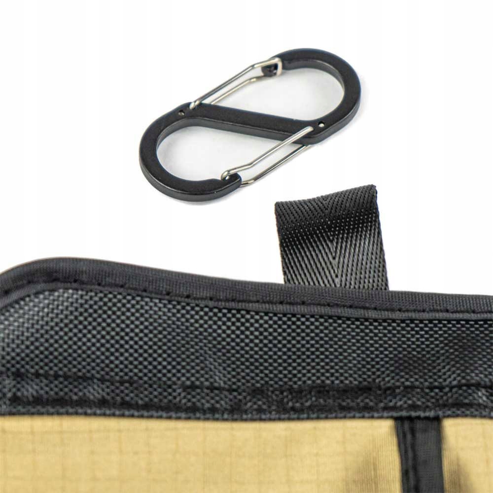 Сумка має 1 сітчасту, 1 прозору, 2 вузькі та 5 широких кишень, щоб ваші речі були впорядкованими та безпечними. Також на задній частині є додаткова кишеня, розміром з цілу сумку, для зберігання ще більшої кількості спорядження. Сумка виготовлена з міцного матеріалу, який легко чистити та важко витирати. Ви можете легко прикріпити його до Т-подібних пазів у вашому наметі, використовуючи 2 ущільнювальні кільця, щоб надійно прикріпити його до рами. Не дозволяйте безладу в наметі та важкому доступу до аксесуарів зіпсувати вашу подорож на позашляховику. Придбайте сумку для аксесуарів для намету на даху та насолоджуйтесь більш організованою та спокійною пригодою.