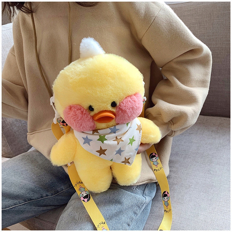 Сумка у формі милої качечки LALAFANFAN. Виготовлена з м'якого плюшу. Ідеально підходить для зберігання різних дрібниць, наприклад, телефону, косметики, серветок тощо. Має тканинний ремінь, який можна вільно прикріпити, тому сумка перетворюється на рюкзак.