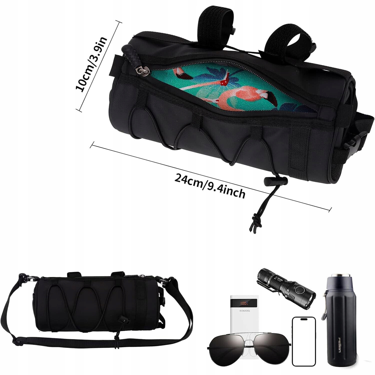 ⚫⚫ 【Велике місце для зберігання】Довжина сумки на передньому кермі становить 24 см, а ширина – 10 см. Ємність становить 2,5 літра, куди можна легко помістити мобільні телефони, павербанки, бездротові навушники, гаманці, енергетичні батончики, велосипедні окуляри тощо.