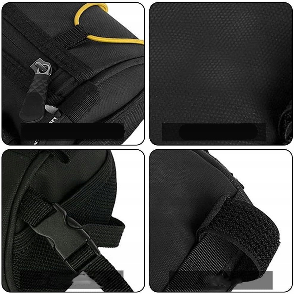 ⚫⚫ 【Матеріал】 Ця сумка для велосипедного керма виготовлена з якісного поліестеру 600D і має чудові водонепроникні властивості. Водонепроникна блискавка запобігає потраплянню дощової води та захищає ваші цінні речі від води та пилу.