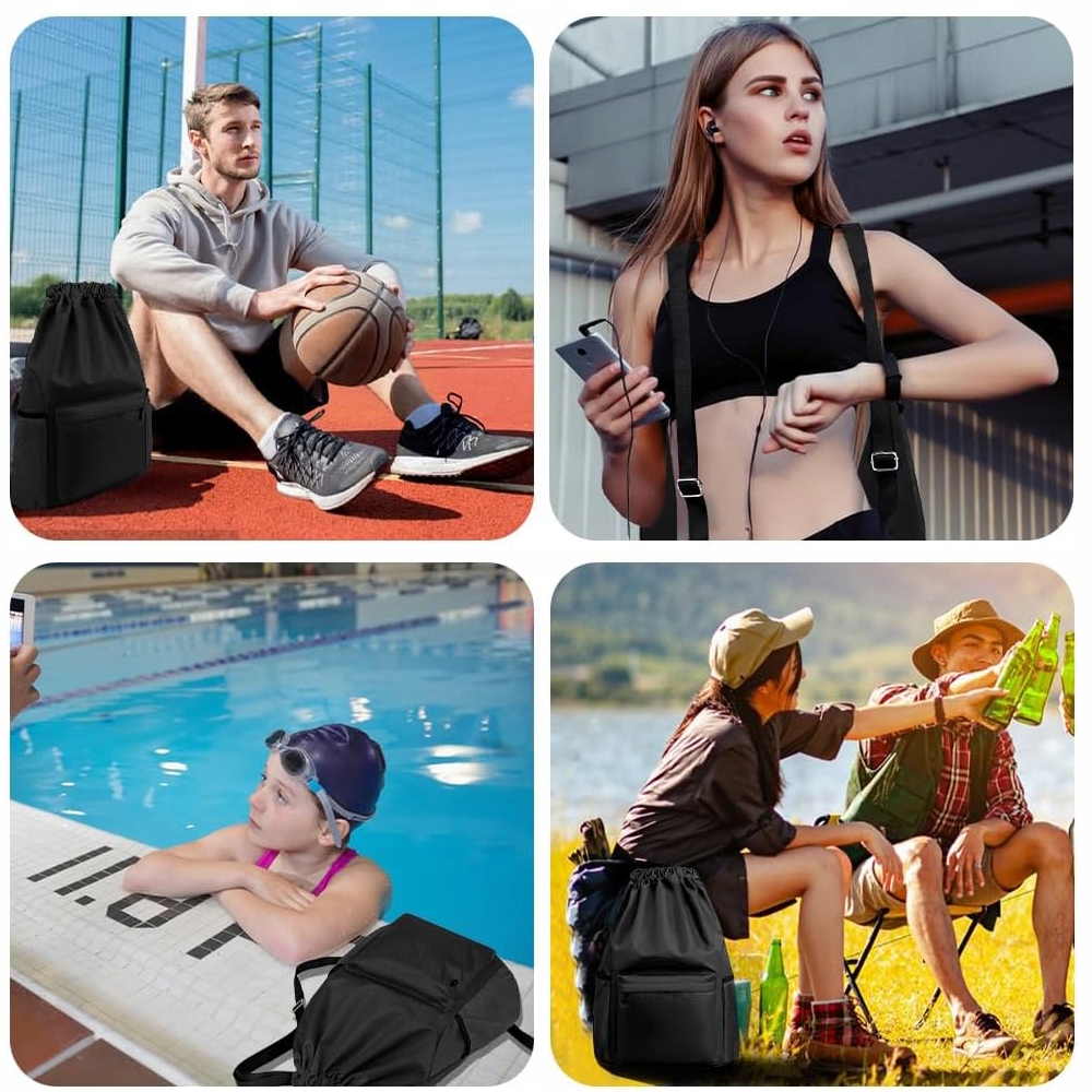 🥎 【Велика місткість】: водонепроникна спортивна сумка має 6 кишень: 1 основна кишеня для великих предметів, таких як баскетбольні м’ячі, одяг, книги, iPad, 1 внутрішня кишеня для мобільних телефонів, ключів, 1 передня кишеня для рушників, 2 бічні кишені для пляшок і парасольки, 1 антистатична кишеня, задня кишеня проти крадіжки для гаманця , картки та готівка