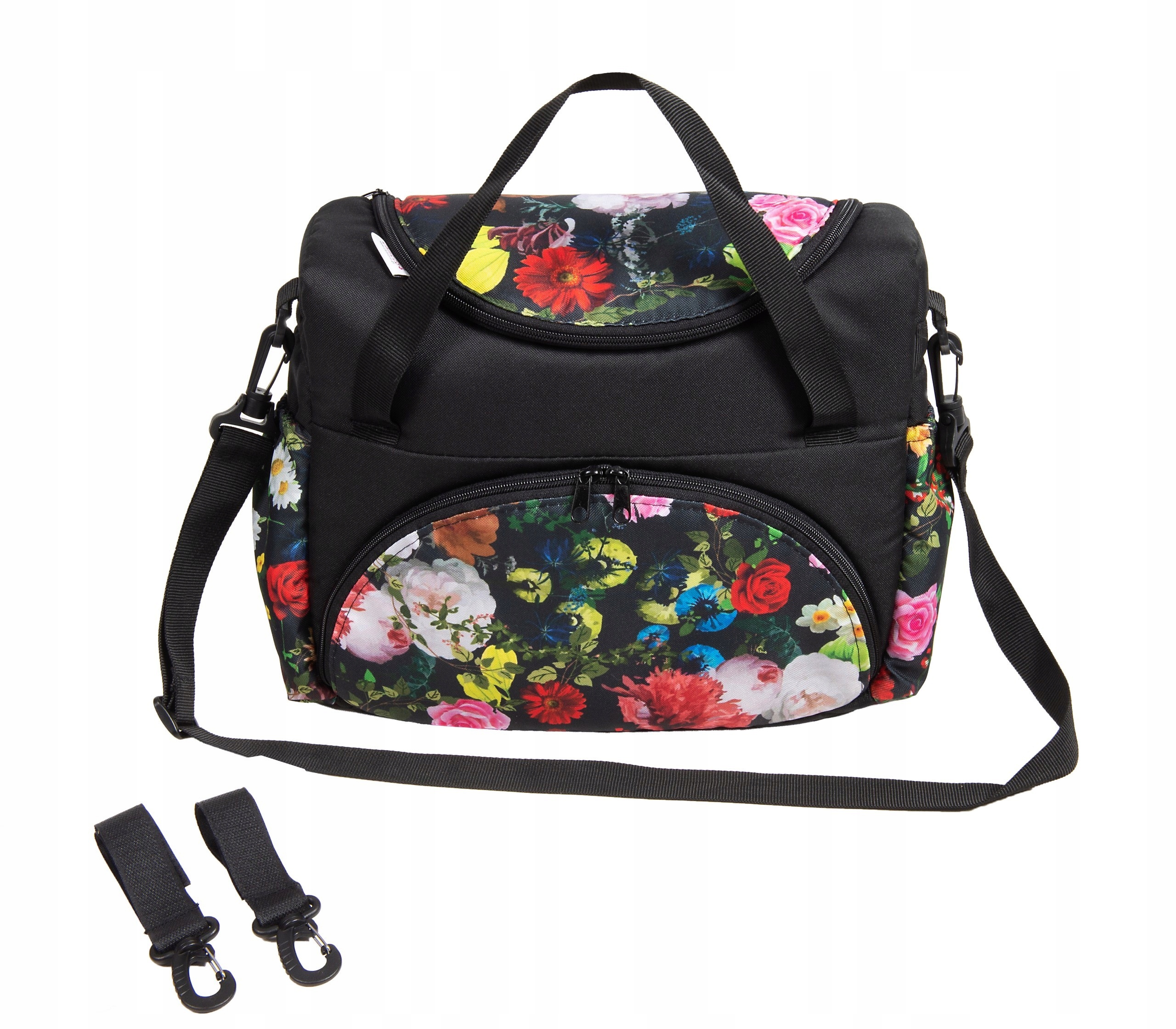 Сумку можна тримати за ручки або носити на плечі завдяки знімному ременю (лямка регулюється) і підвішувати на ручки коляски завдяки спеціальним гачкам, що застібаються на липучки, які можна зняти в будь-який момент