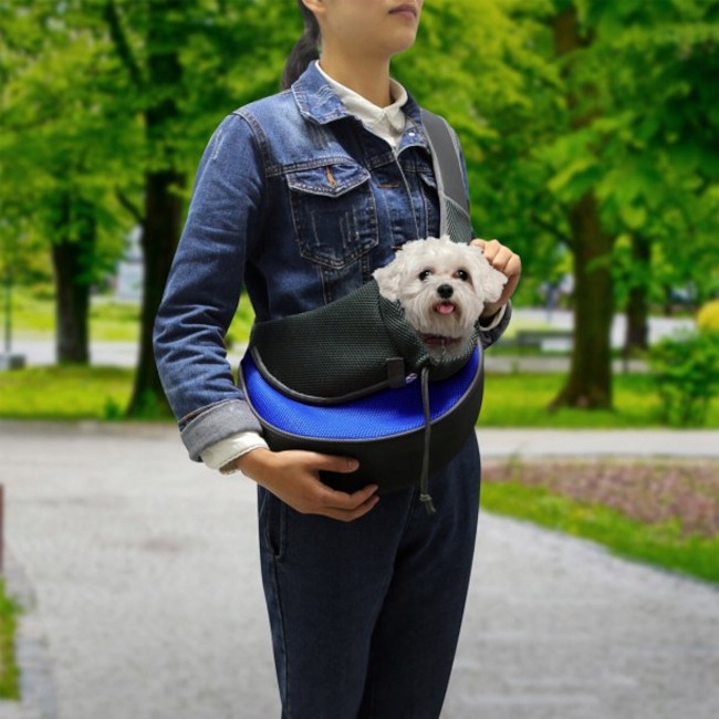Переноска для собаки закривається на блискавку, а отвір для голови оснащено спеціальним шнурком, який дозволяє підлаштувати отвір під вашого вихованця.