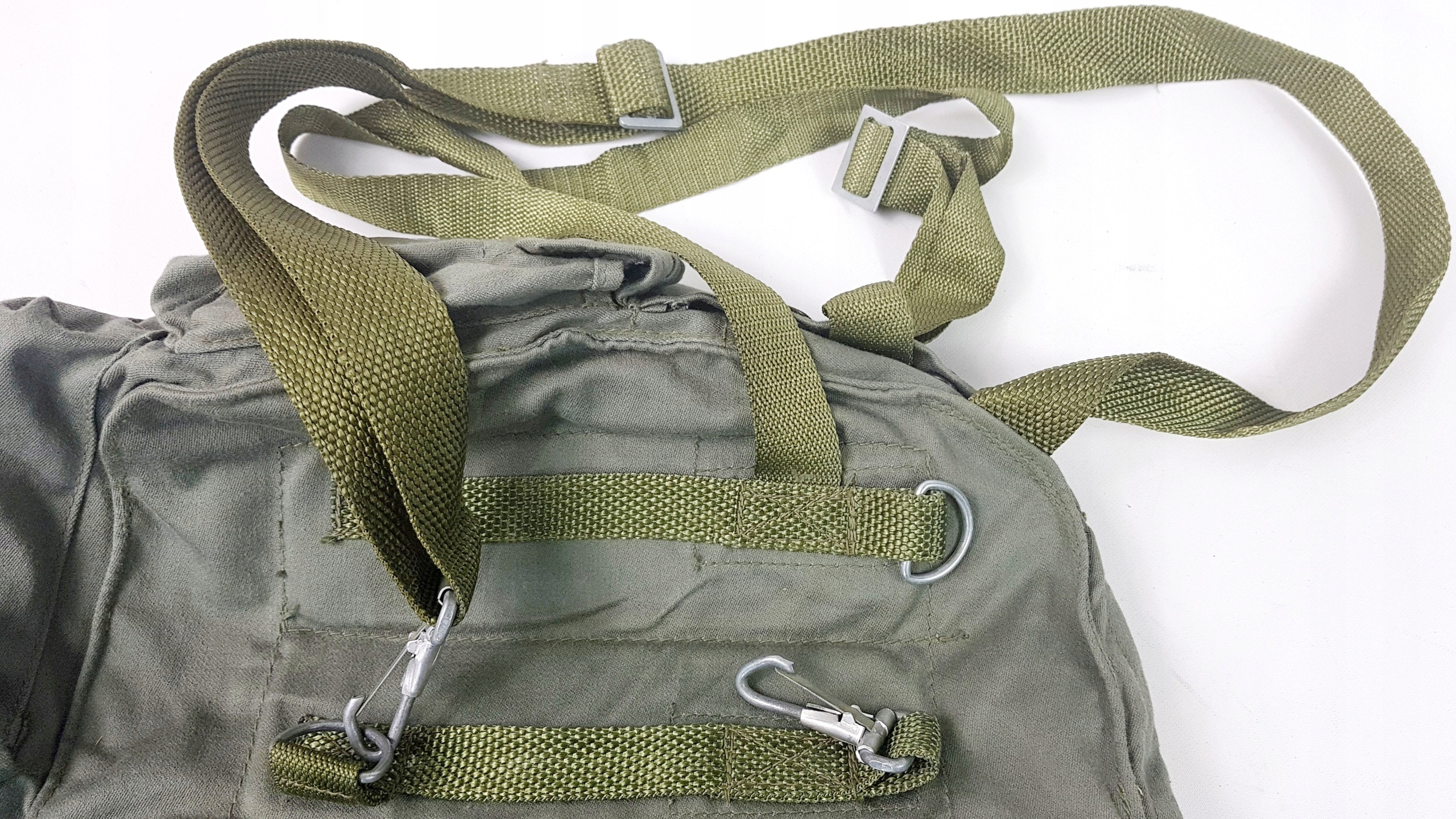 Мішок надходить із надлишків, прямо зі складів військовий. Він оснащений міцним регульованим ременем через плече та другим ременем для зав’язування на талії, відкривається та закривається на застібки.