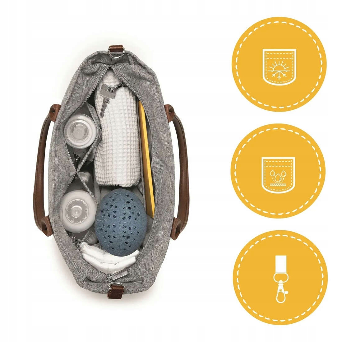 Елегантна сумка для коляски Ingrid має три відділення в головній кишені, у які можна зібрати необхідні речі на кожен день - ніщо не здивує вас на прогулянці, під час візит до лікаря або в магазин. Дві термокишені зберігають потрібну температуру молока, води та обідів, а у водонепроникну кишеню поміститься брудний одяг - ви можете відокремити його від решти вмісту сумки.