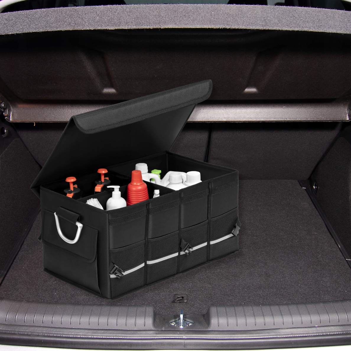 Він виготовлений з високоякісної водонепроникної тканини 1680D, яка захищає вміст від вологи та погодних умов. Універсальний чорний колір ідеально вписується в салон будь-якого автомобіля.