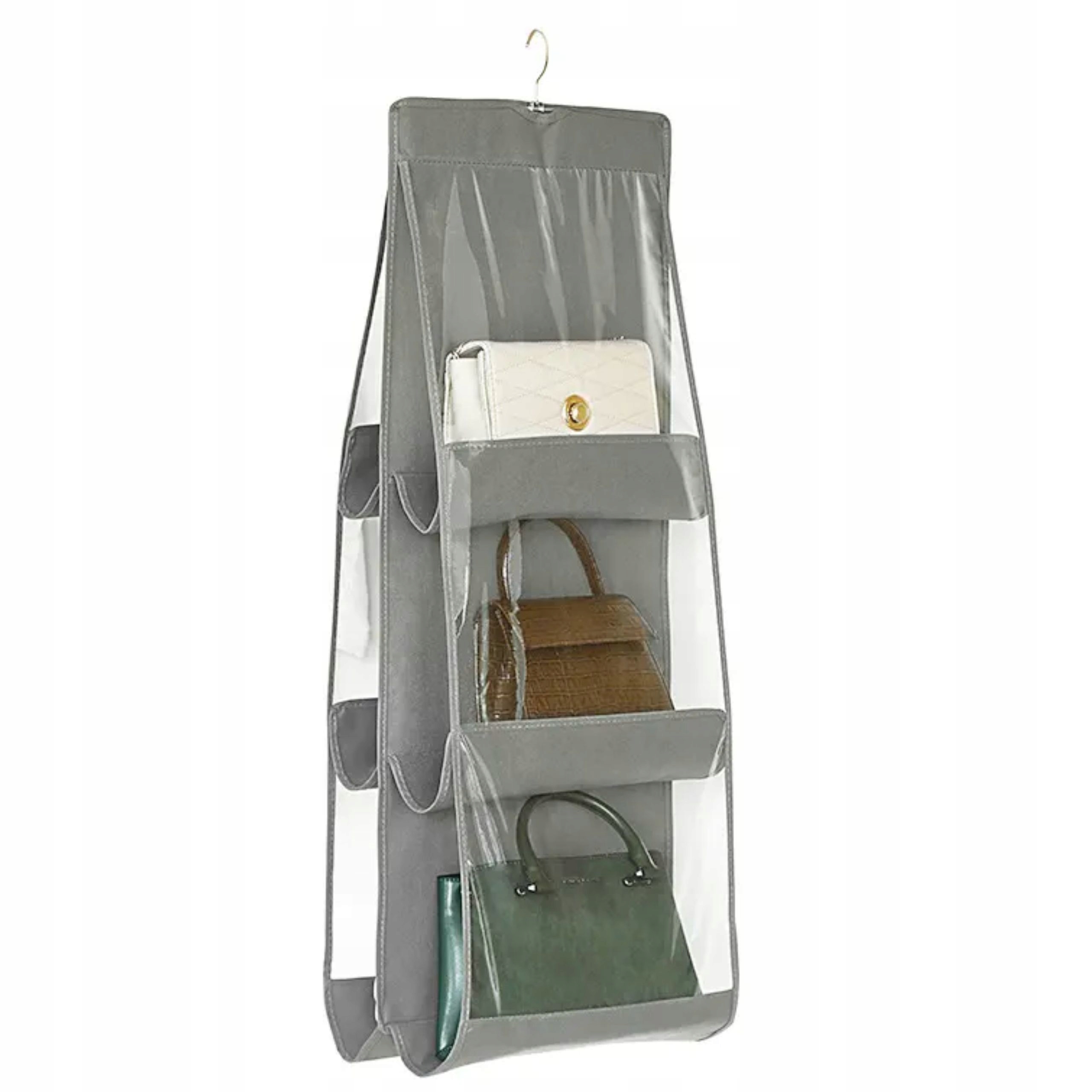 - ❤️ Прозорі відділення не дають сумкам накопичувати пил і водночас полегшують розпізнавання сумок у шафі.