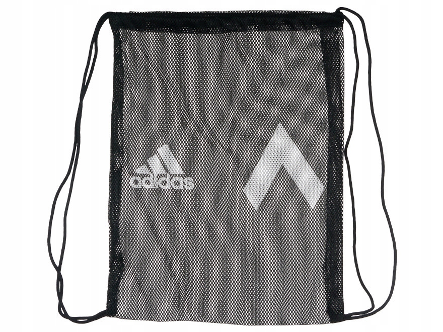 Сумка виготовлена із сітки, що забезпечує вільний потік повітря та полегшує сушіння речей усередині. Має контрастні логотипи Adidas і Adidas ACE.