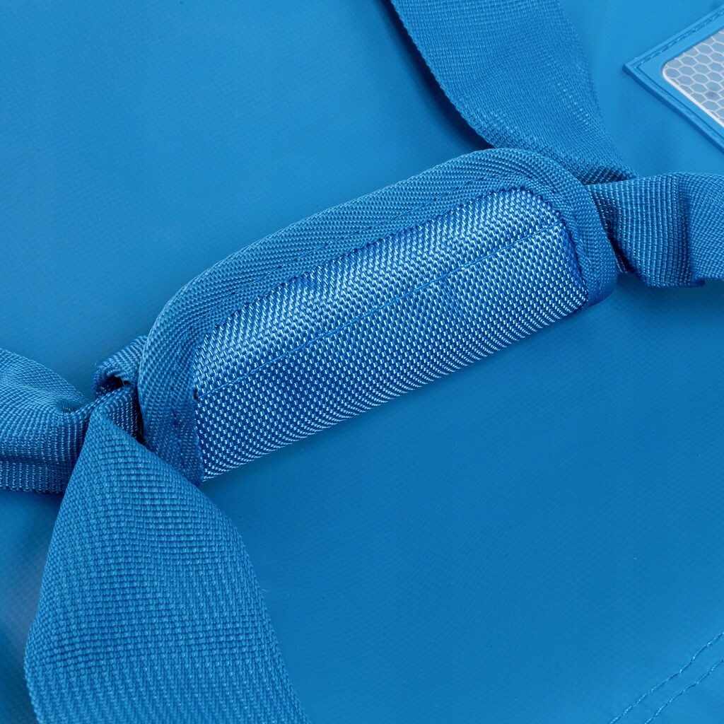 Highlander Outdoor Storm Citbag Transport Mage потужністю 65 л, виготовлений з міцного, водонепроникного матеріалу PVC 600D синім, ефективно захищає вміст від вологи. Основна камера закрита на блискавці D -укладеної, що полегшує упаковку та організації вмісту. У ньому є дві зовнішні кишені, розміщені спереду та збоку, які також кріпиться блискавками. Всередині є сітчаста кишеня для менших аксесуарів, оснащена замком. Зовнішні кріплення та петлі дозволяють прикріпити додаткове обладнання. На задній частині сумки є прозора панель для ідентифікатора. G