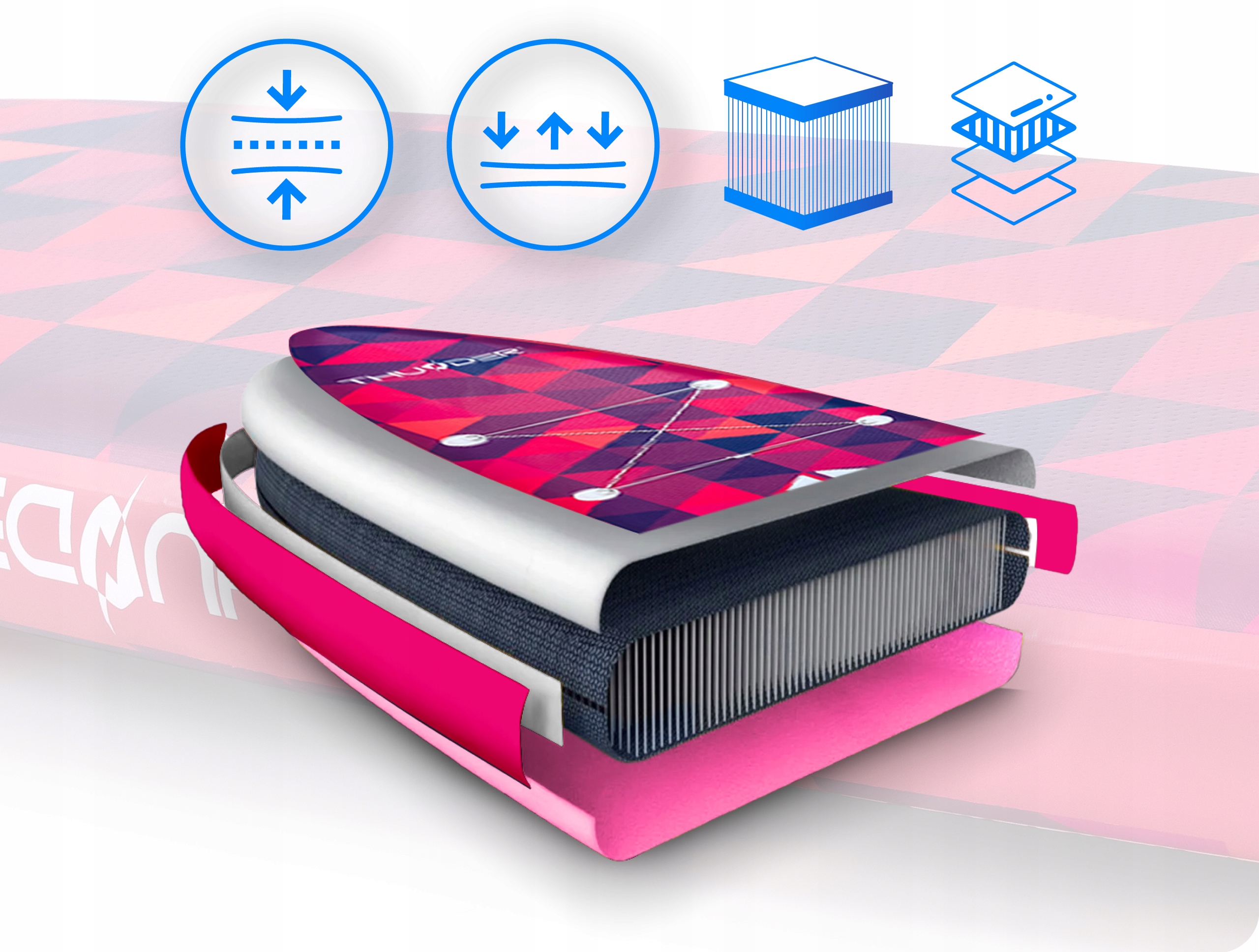 ➡ Композитна композитна пластина з товстим шаром скляного волокна, армованої, покрита шаром піни Eva з м'якою, комфортною та анти -слизною текстурою, що забезпечує виняткову адгезію та стабільність.