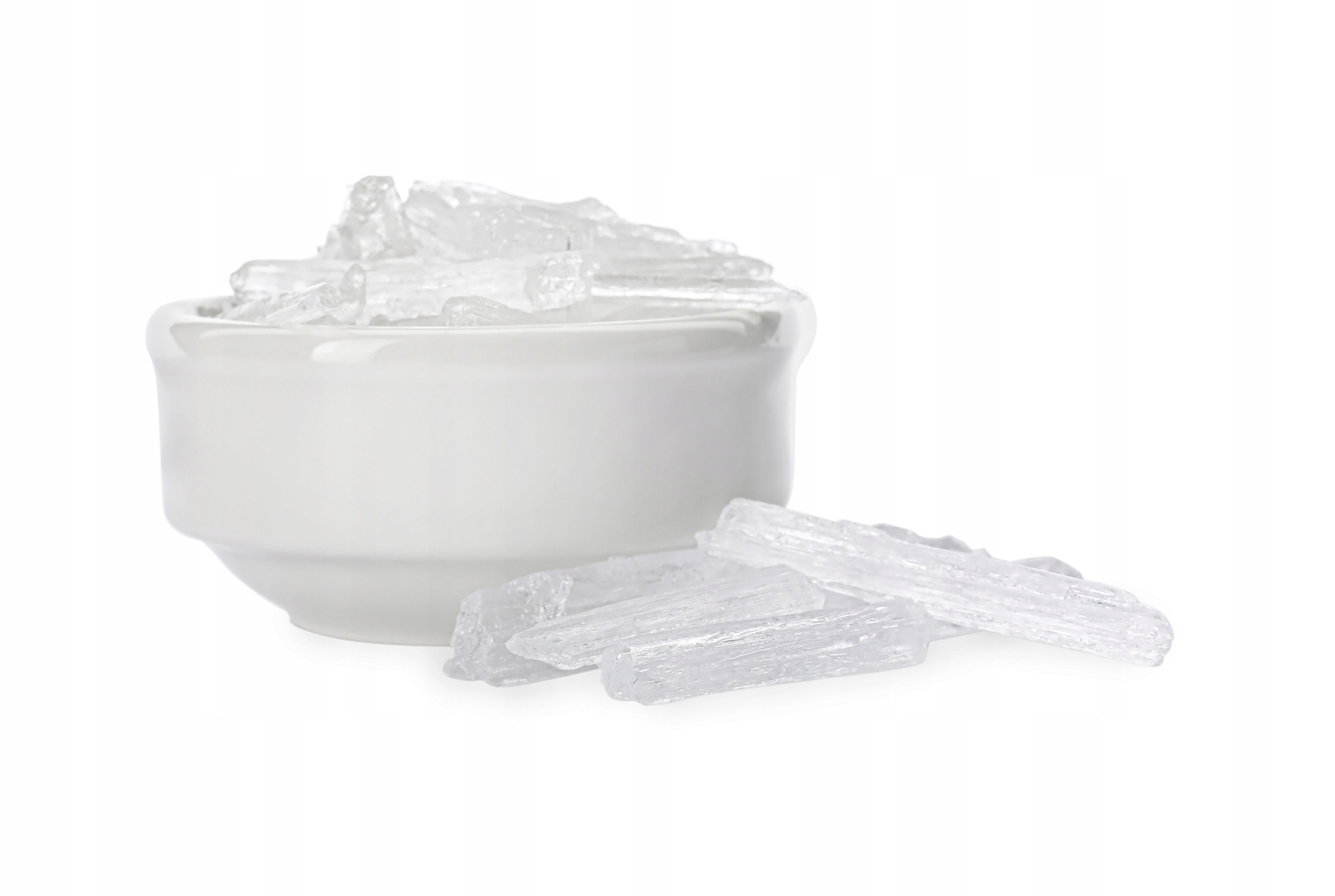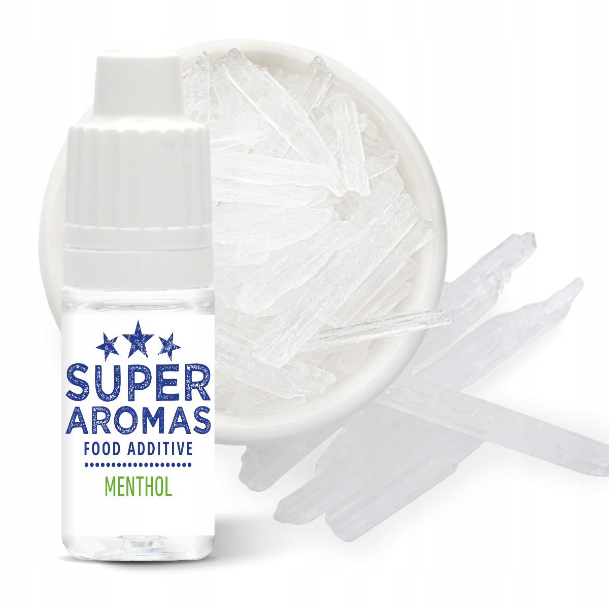 - Ментол — це харчова добавка у вигляді дуже пряної, проникливої м’яти, яка надовго залишає відчуття арктичного холоду. Продукт у вигляді суміші кристалів ментолу, розчинених у 99,5% пропіленгліколі в концентрації 67 г / 100 мл.